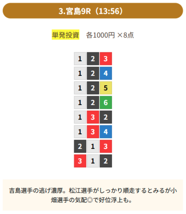 一攫千金の夢も良いですが、それよりも「今日も的中してくれるだろう」という信頼感の方が価値があるでしょう。