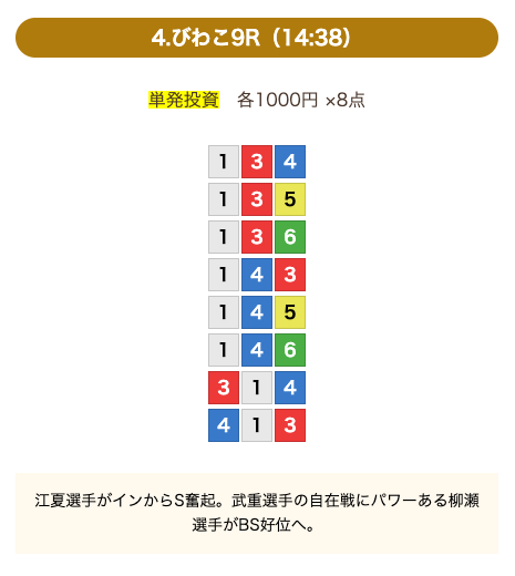 | 25年11月17日 | 三国9R | 三連単 | 8点 | 16,000円 |