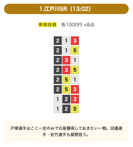 | 25年12月22日 | 戸田7R | 三連単 | 8点 | 22,000円 |