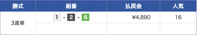 1-2-6で的中!