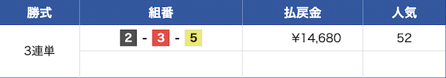 | 3号艇 | ◎ | ◯ | ◎ | ◎ |
