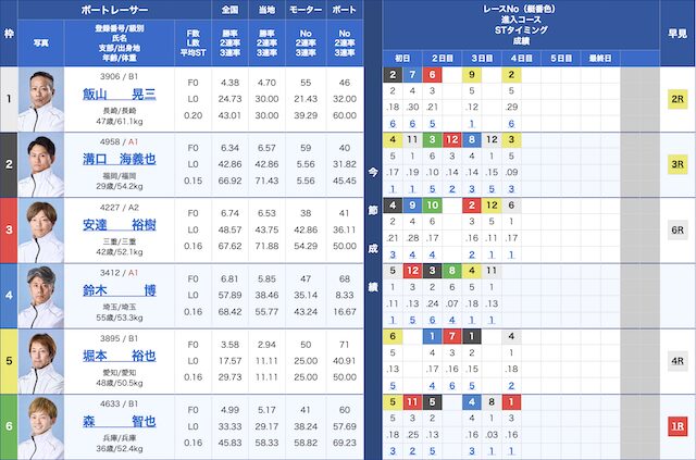 | 6号艇 | ◎ | △ | ◎ | ◯ |