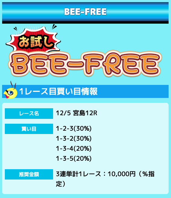 これから競艇で収益を上げたいと考えている方は、まずはビーボートの無料予想から試してみてください。