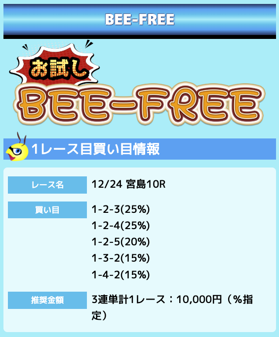 分析とは別で、ビーボートが最も稼いだ無料予想をご紹介しておきます。
