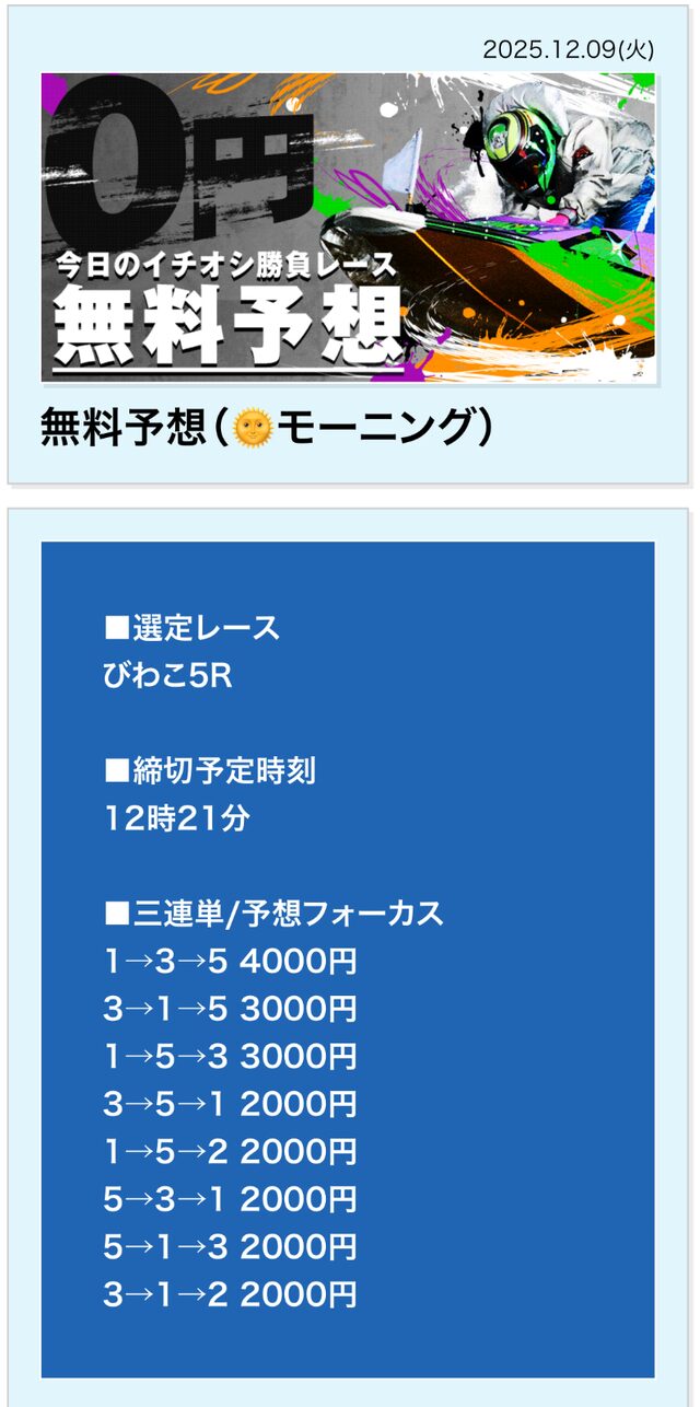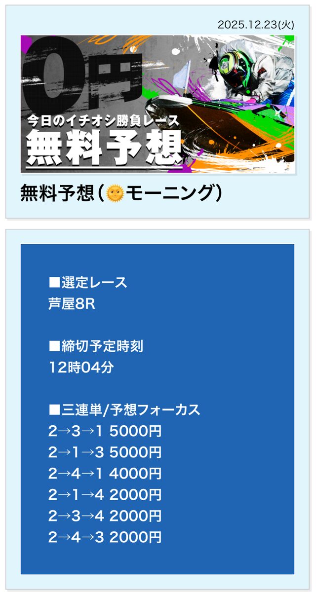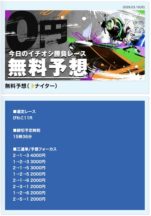 上記の2つの競艇場の予想が公開されたら、積極的に参加してもいいでしょう。