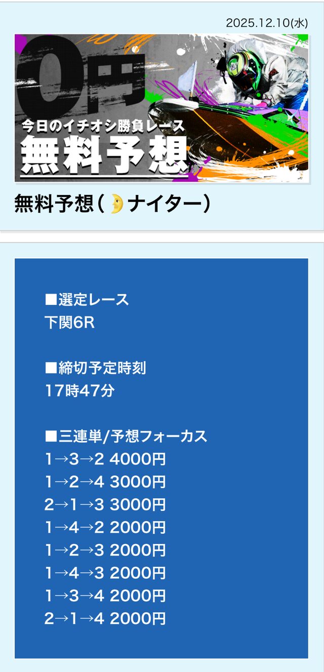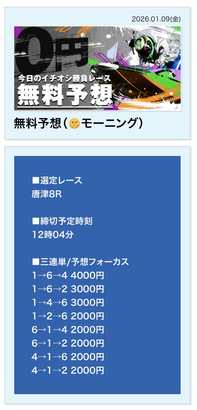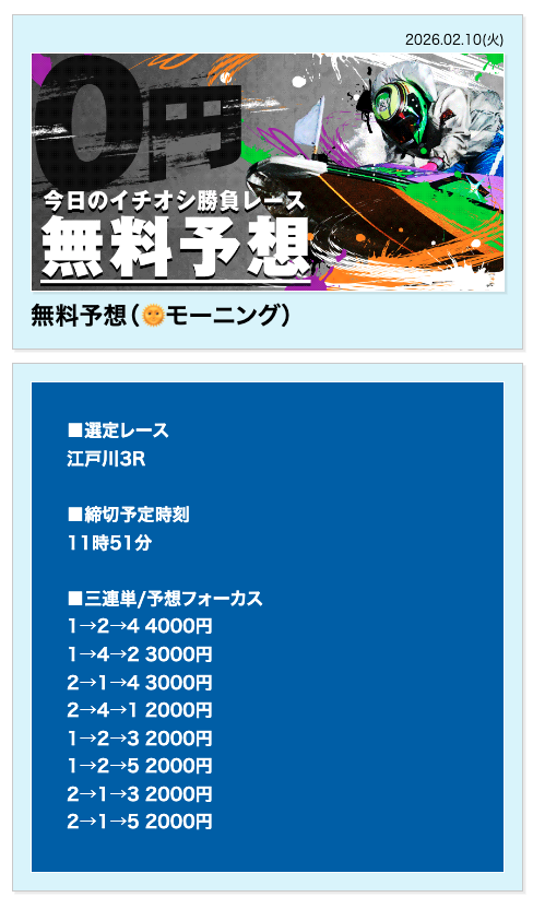 その場合は、まずは無料予想に参加して、貯まった軍資金を元手に有料予想を購入してみてください。