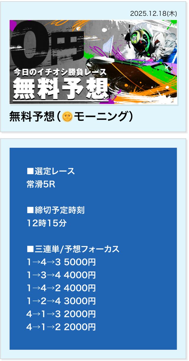 今回のレース以外にも、5万や6万を当てている日もあるので精度の高さに驚いています。