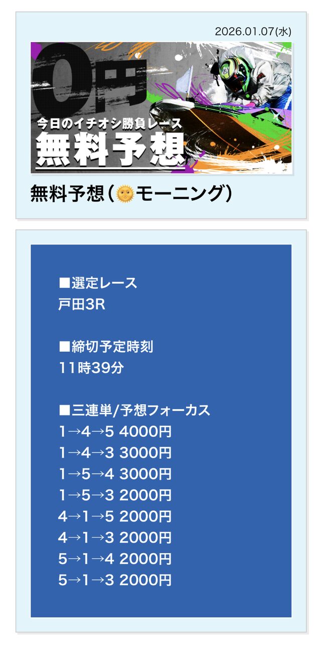 稼ぐことが目的であれば有料予想に参加するべきと言えますが、中には情報料がネックになる方もいるでしょう。