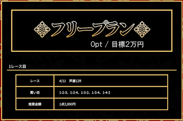 | 狙い方 | バランス | バランス | バランス | バランス | 穴狙い | バランス | バランス | バランス | 堅実 | バランス |