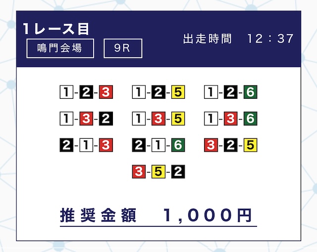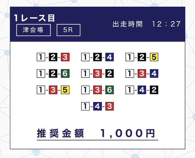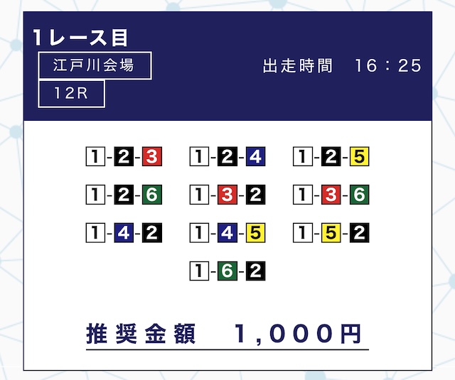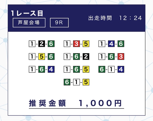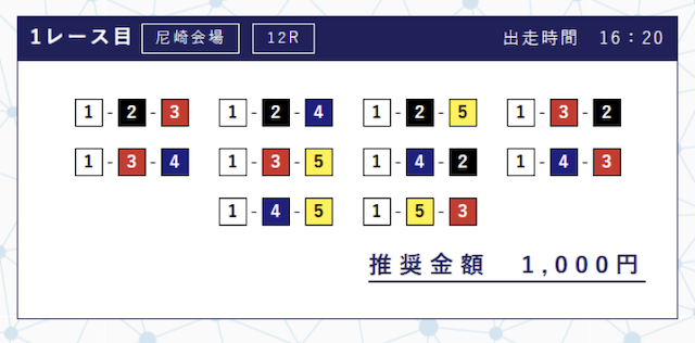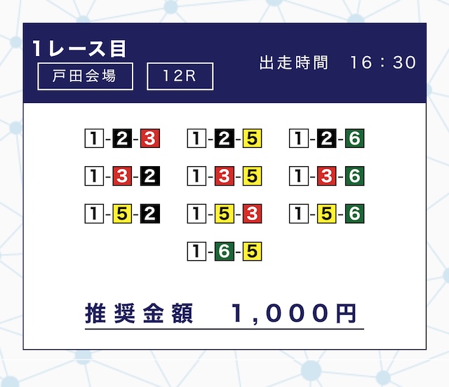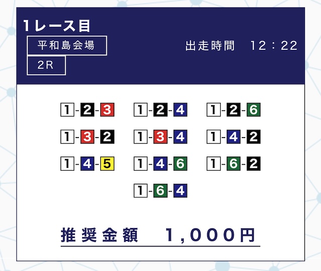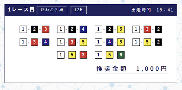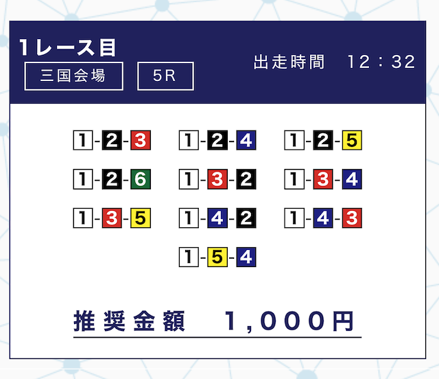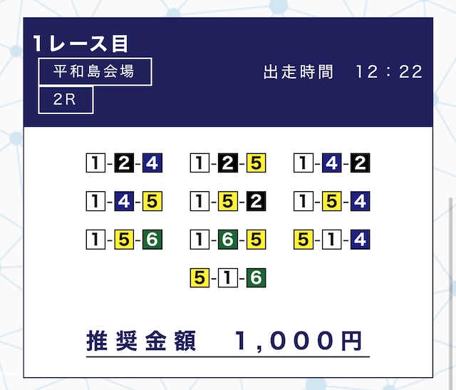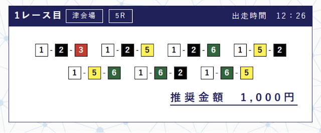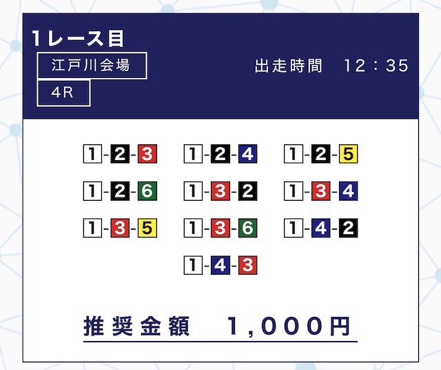 1着は1・2号艇に絞り込み、2着には1・2・3号艇を選んでいます。