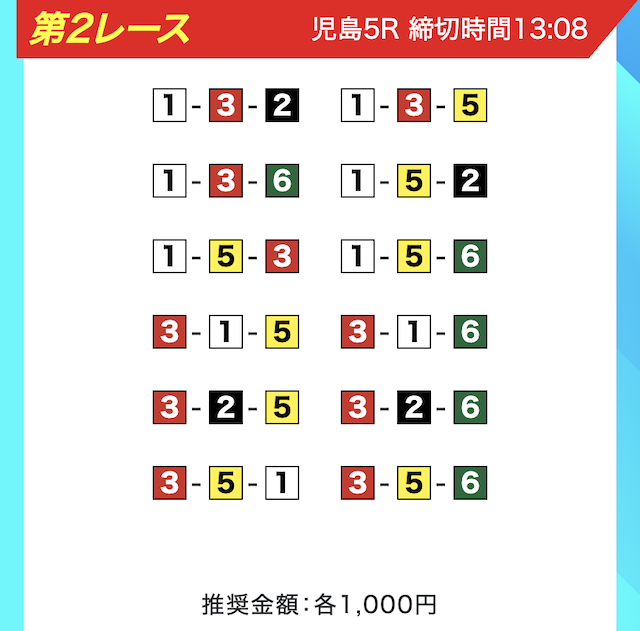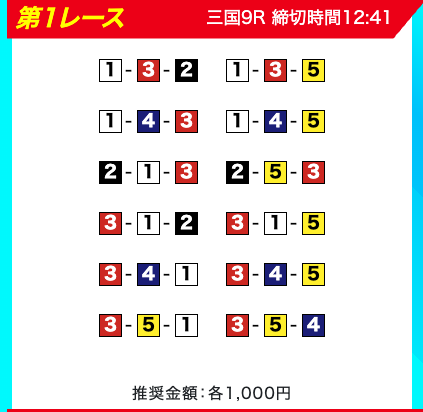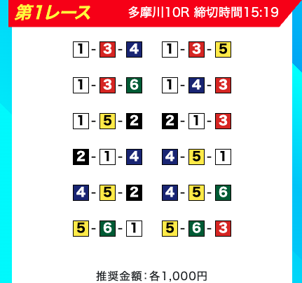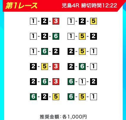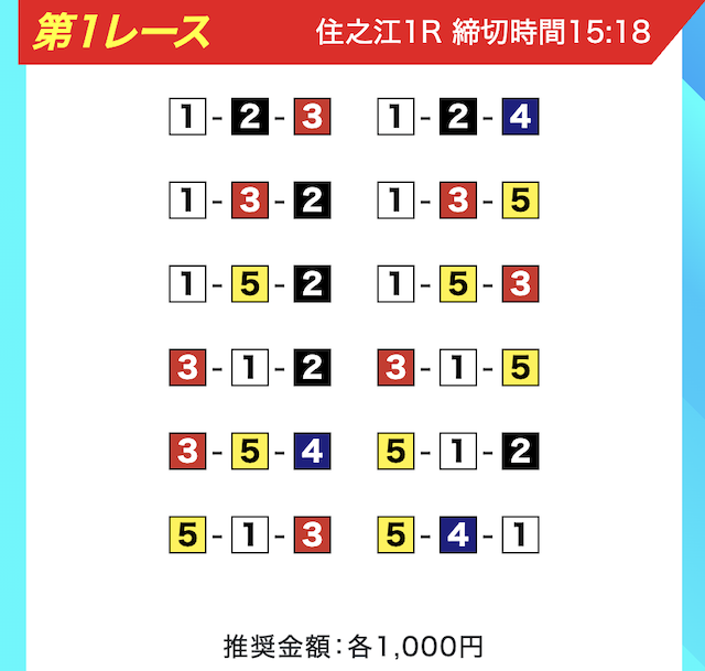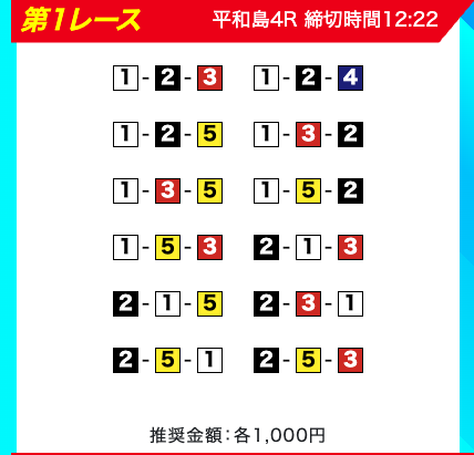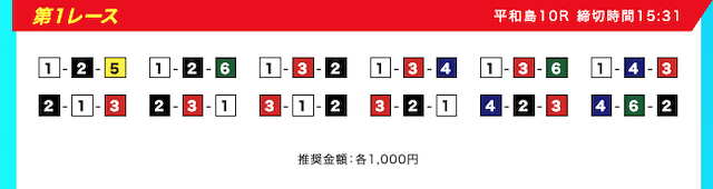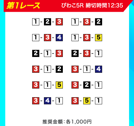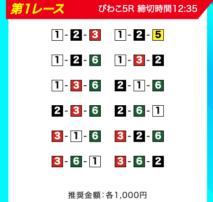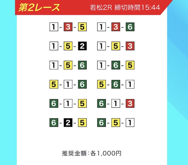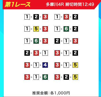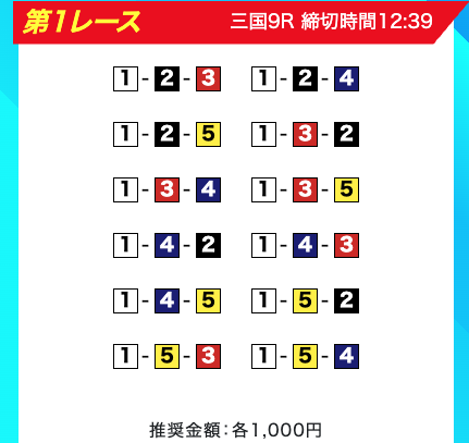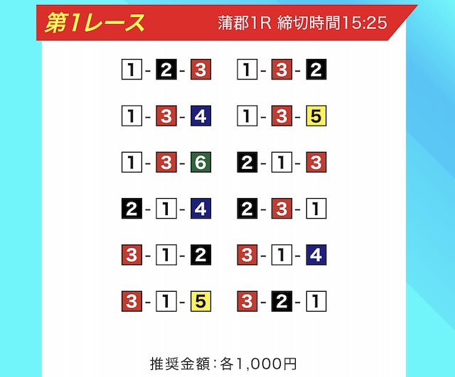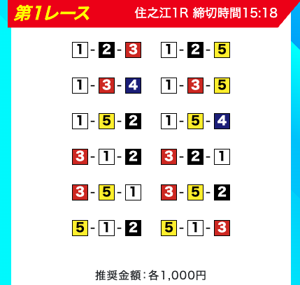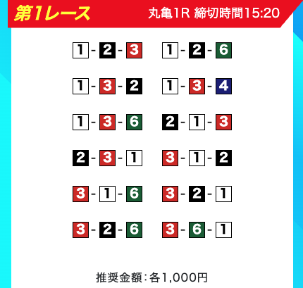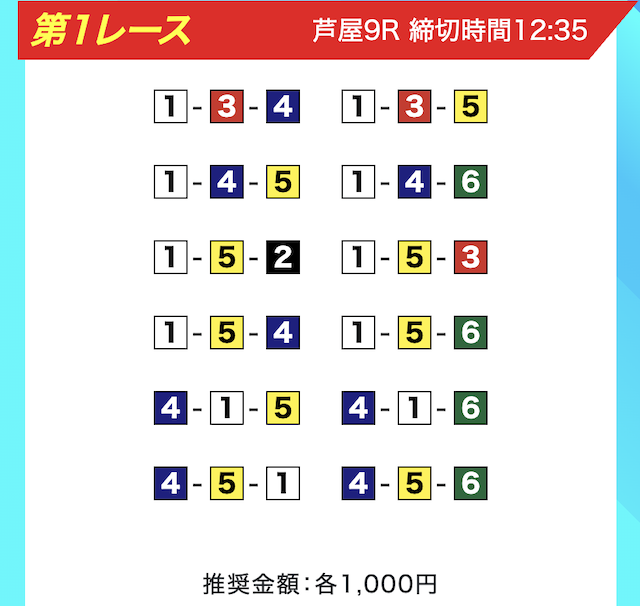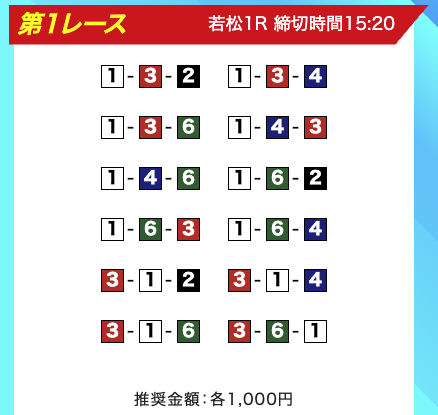1号艇を軸にしつつ、3・4・5号艇の攻め筋を押さえた6点構成で、一見するとバランスよくまとまっています。