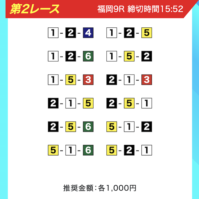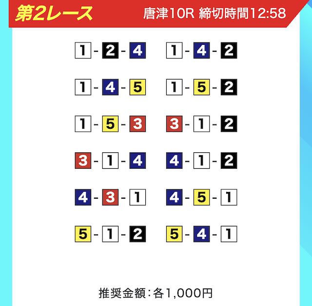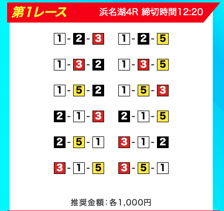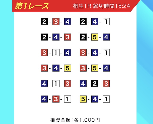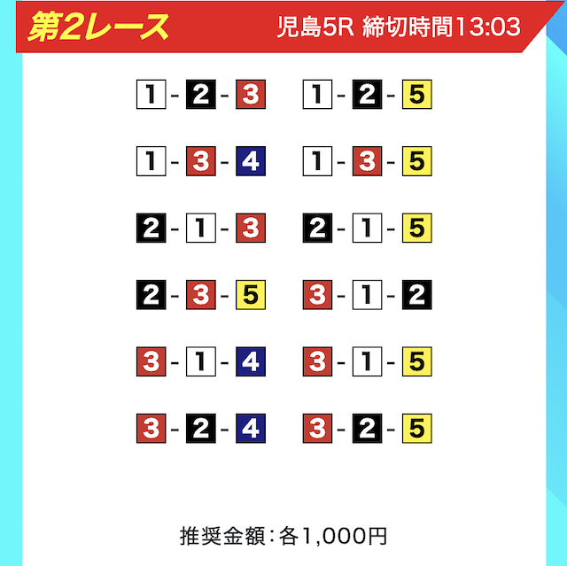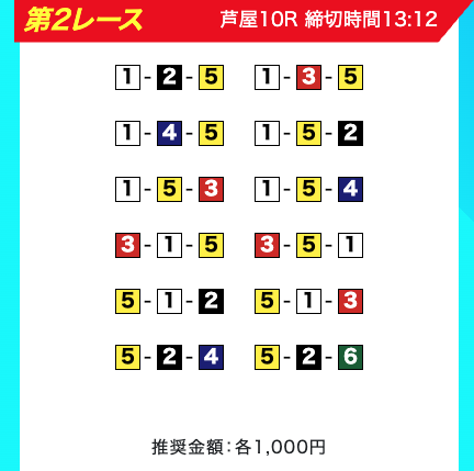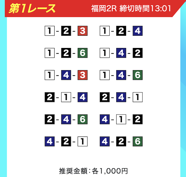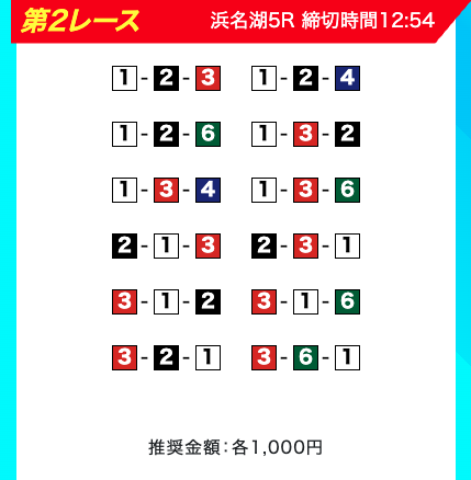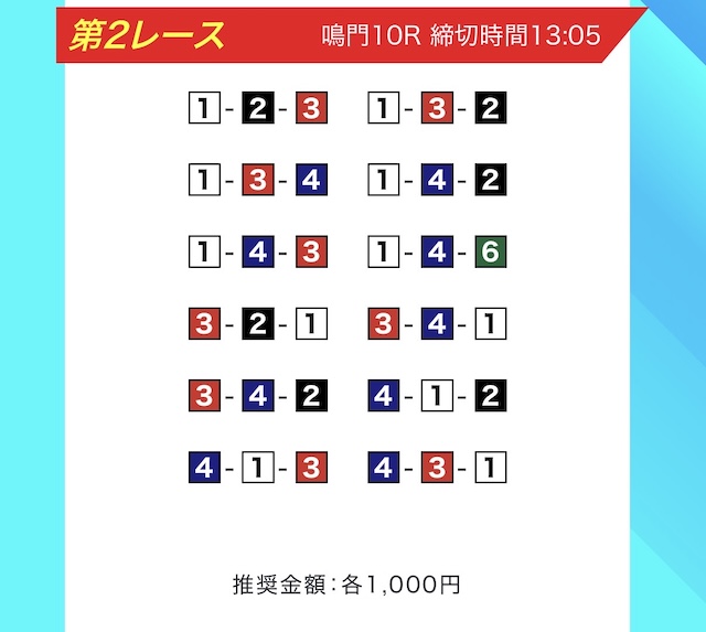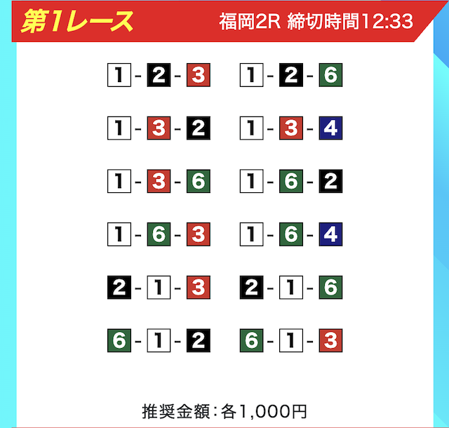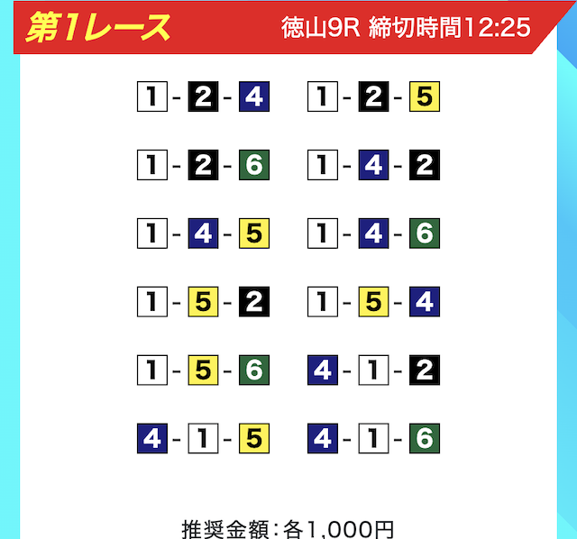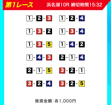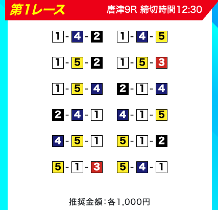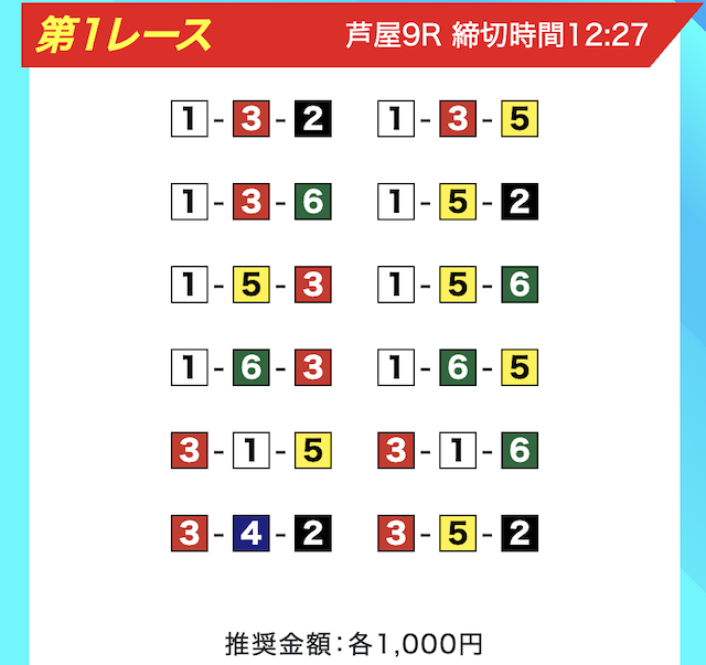 1号艇を軸にしつつ、3・4・5号艇の攻め筋を押さえた6点構成で、一見するとバランスよくまとまっています。