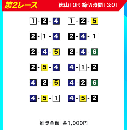 | 狙い方 | 穴狙い | 穴狙い | 堅実 | バランス | 堅実 | 穴狙い | 穴狙い | 穴狙い | 穴狙い | バランス | 穴狙い | 穴狙い | バランス |