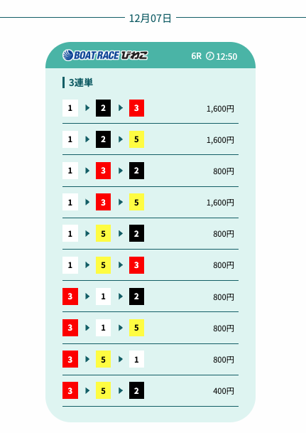 続いて、競艇アシストが最も稼いだ無料予想をご紹介します。