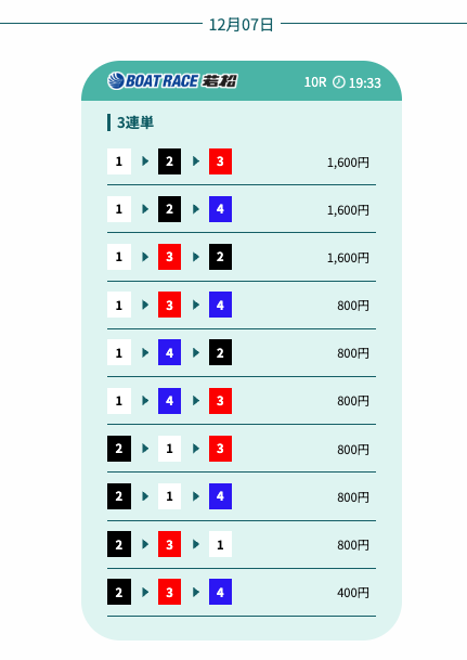 インが強いレースを見極めつつ、比較的人気の組み合わせに厚めに張ることで、堅め決着でも払戻を積み上げやすい買い方になっています。