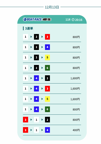 勝率の高い予想に乗り、競艇アシストで勝負してみてください。
