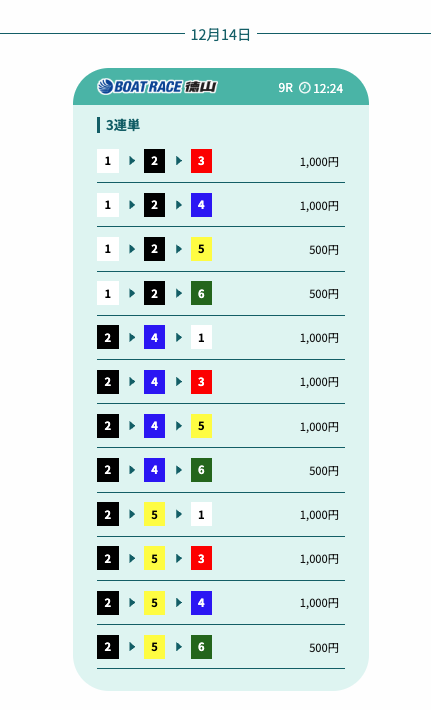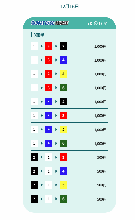 そんな競艇アシストの無料予想は、ただ闇雲に点数を増やすのではなく、点数と金額を細かく調整して期待値を取りにいく設計が特徴。