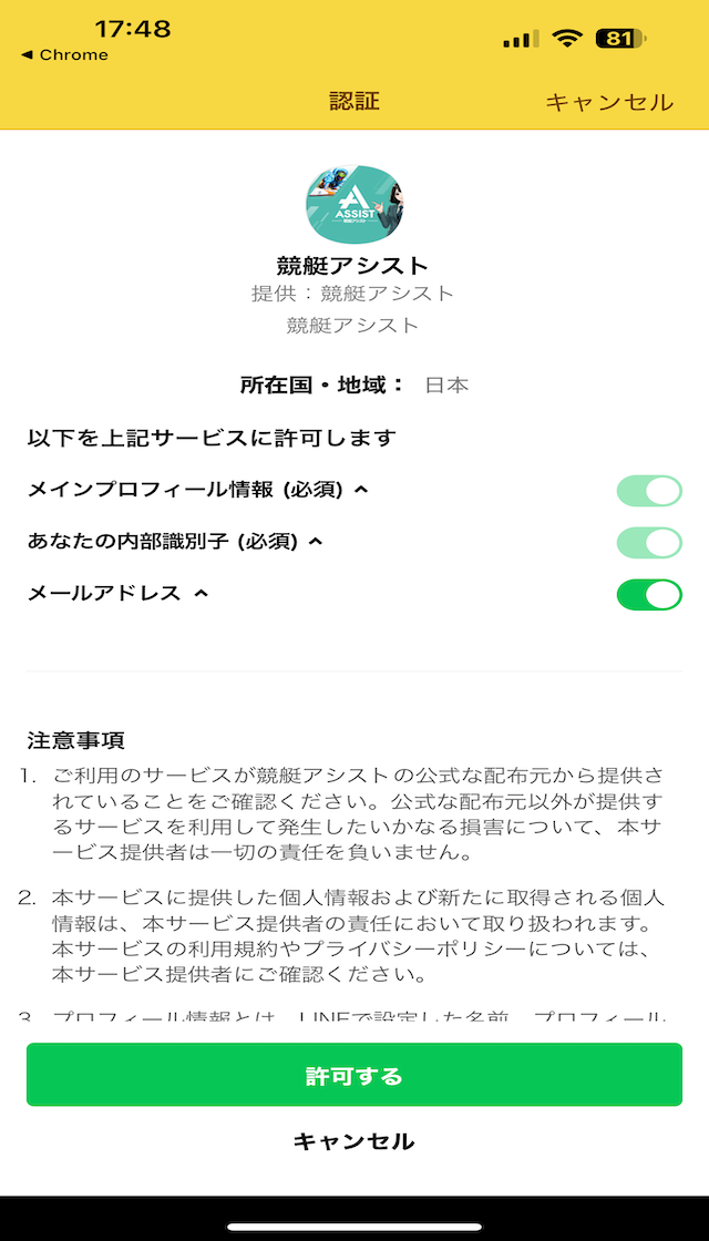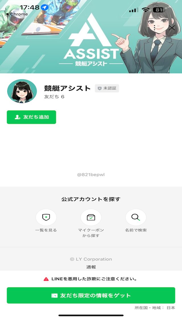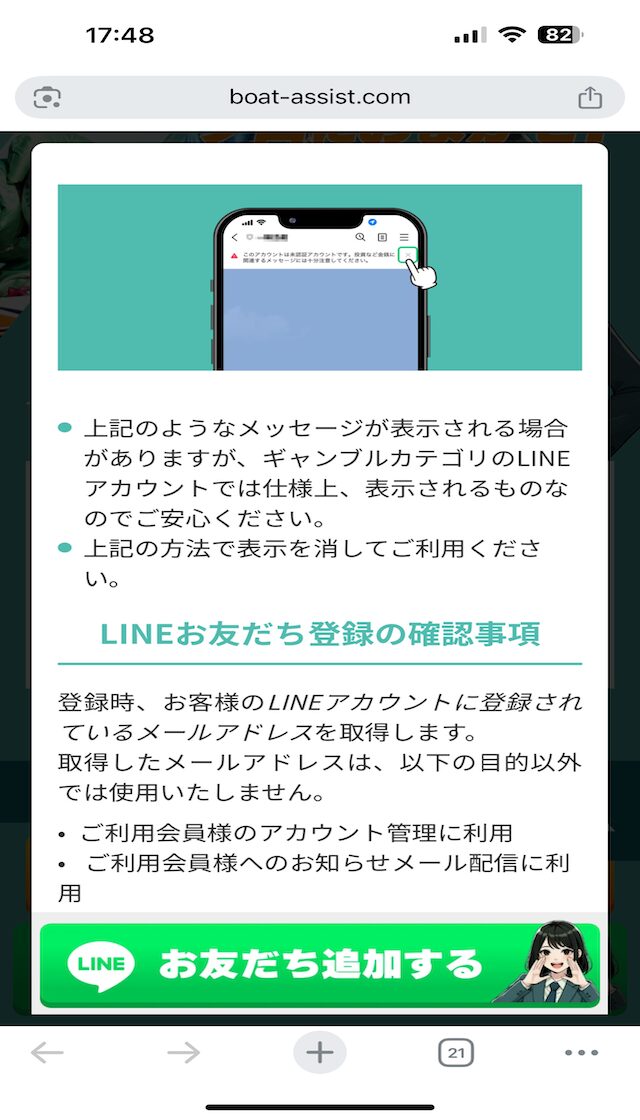 競艇アシストはメールアドレス不要で、LINEアプリさえあれば手続き完了。