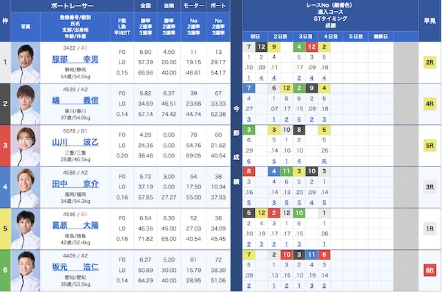 中辻選手の3連対率は7割超えで、舟券に絡む可能性が極めて高いでしょう。