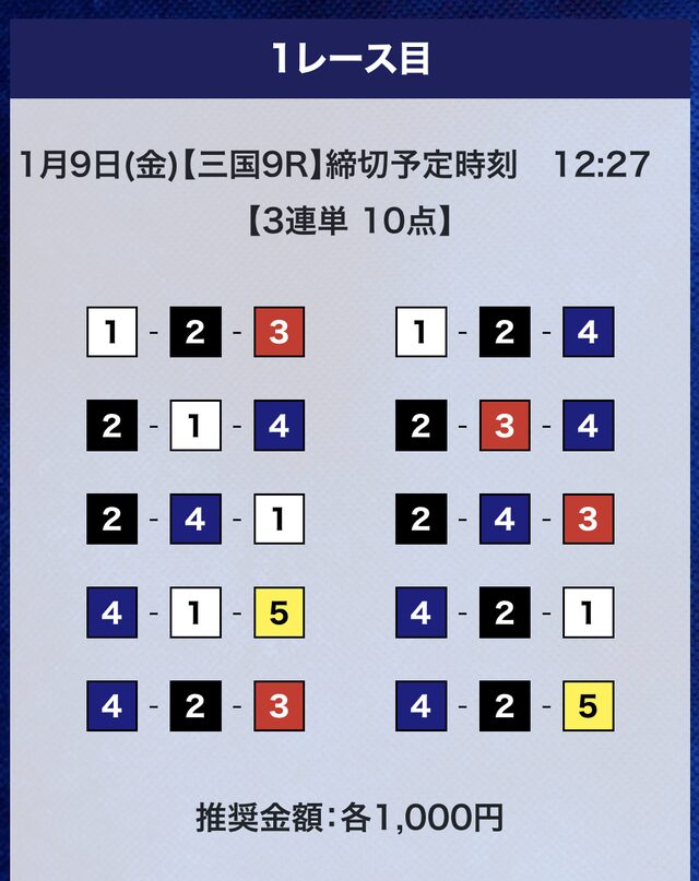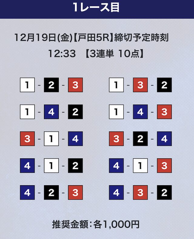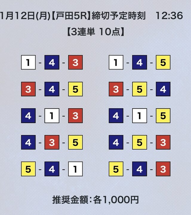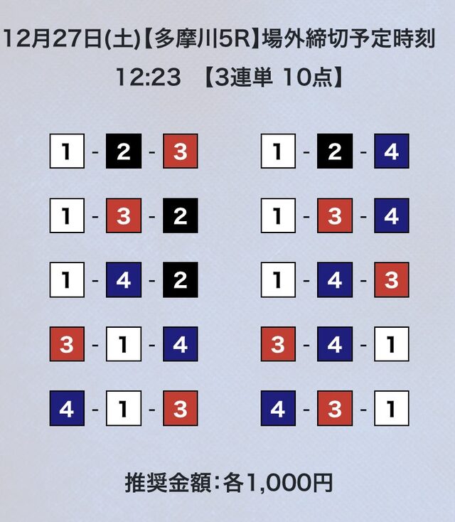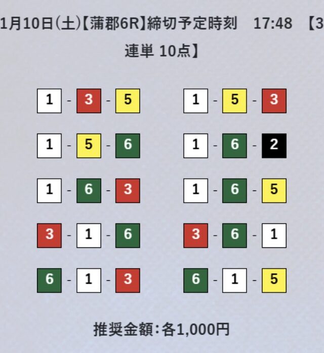 3連単10点での予想。