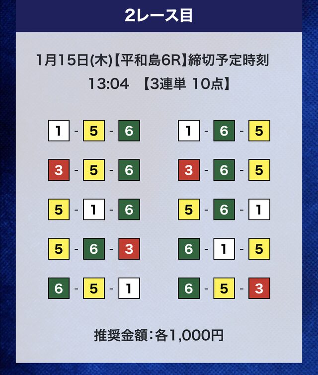 頭には1号艇と3号艇を選択しています。