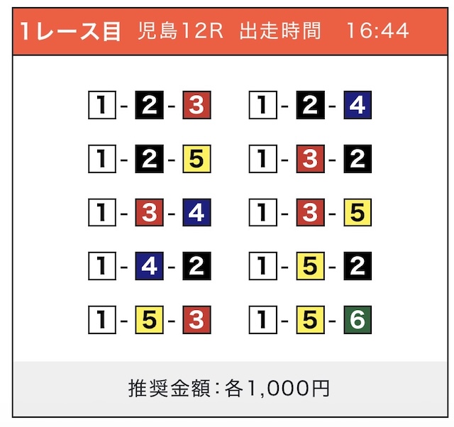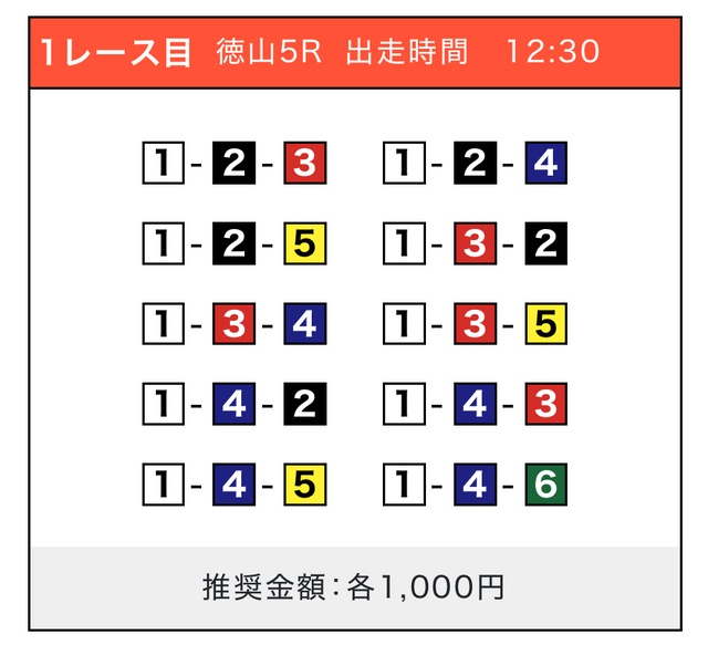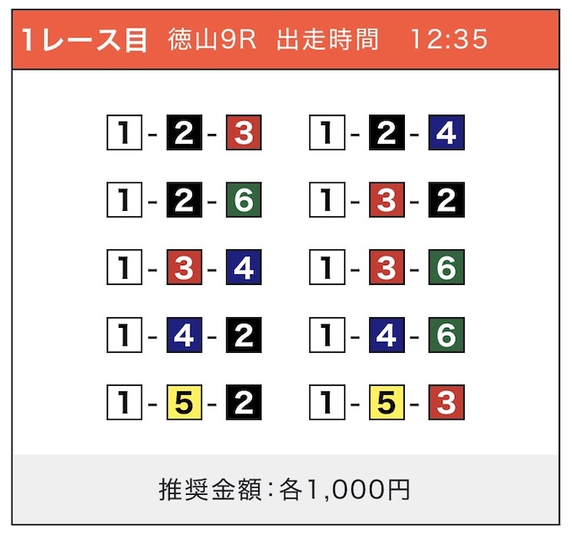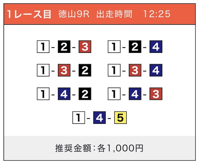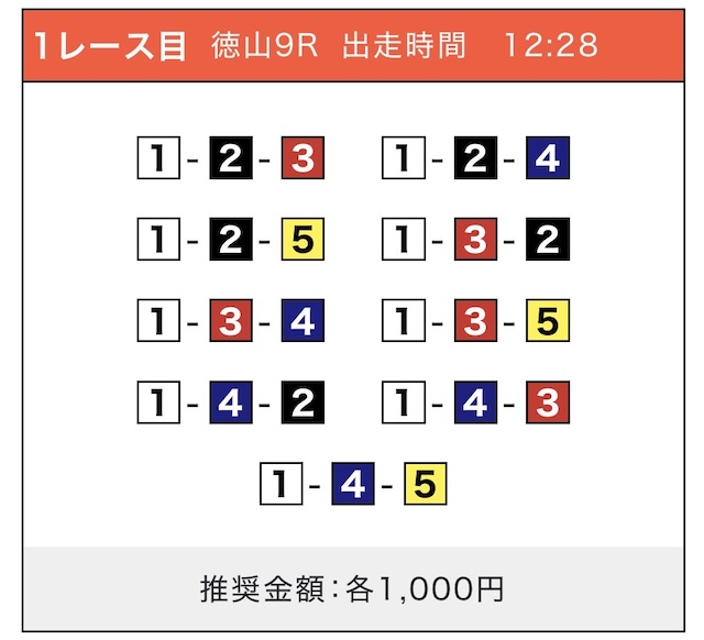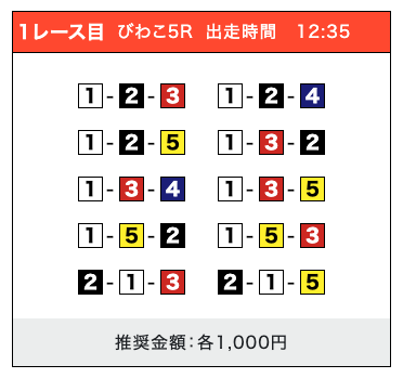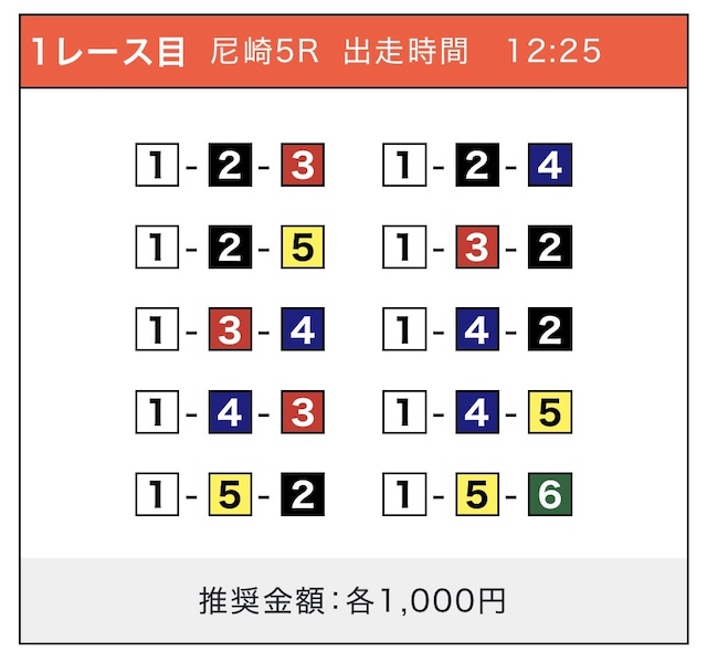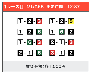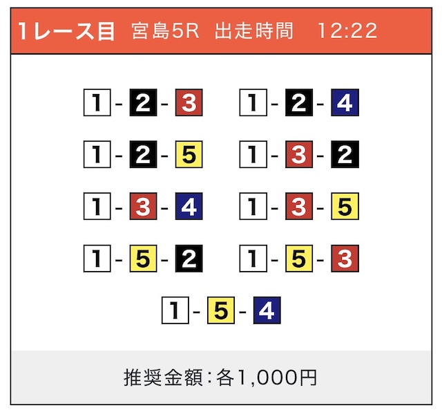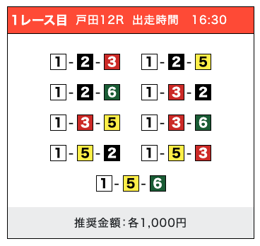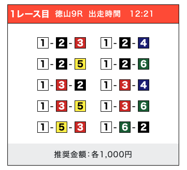 「2-1-5」の買い目で見事に的中しました!