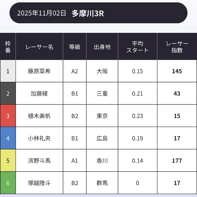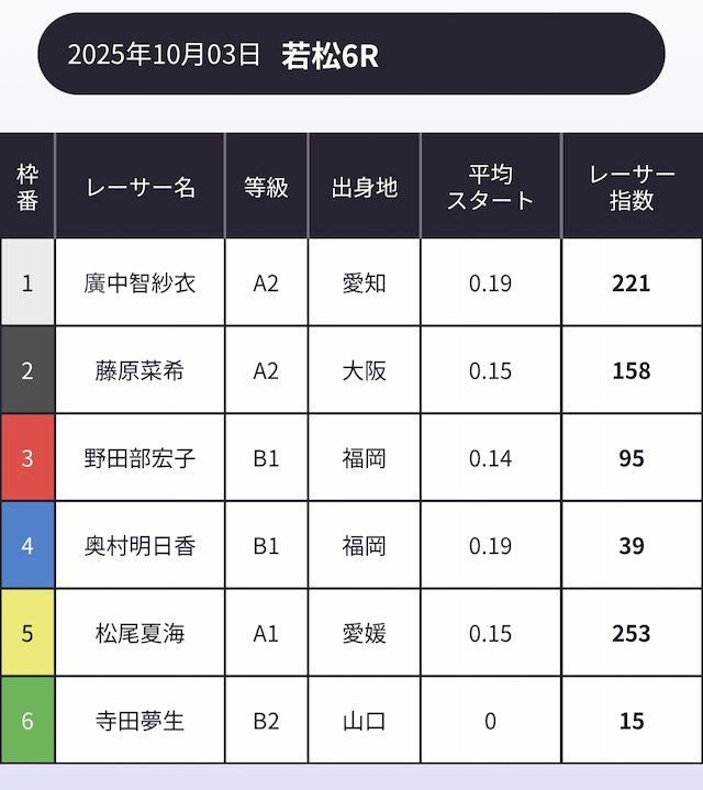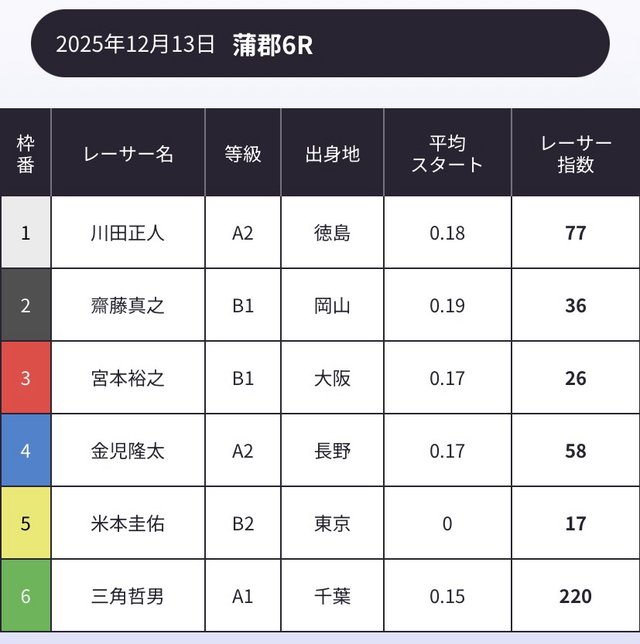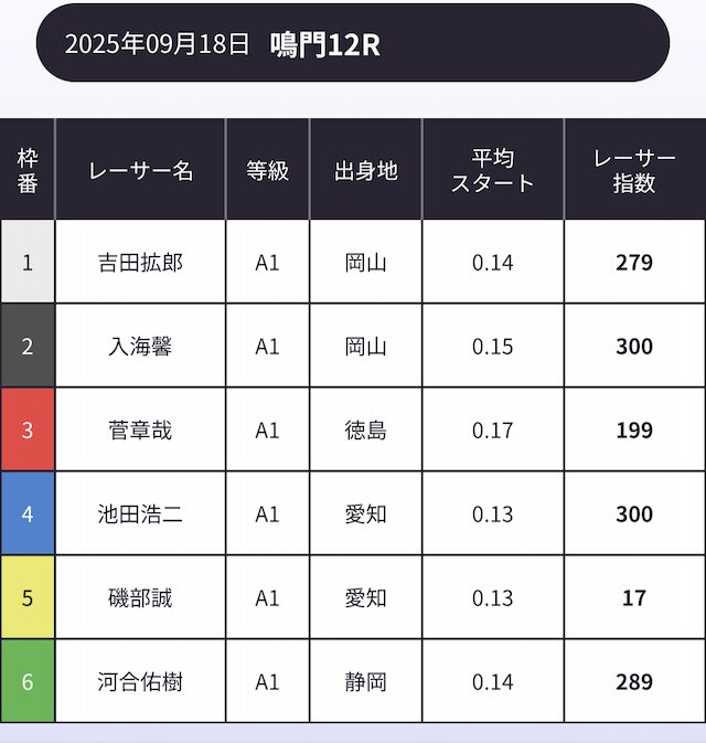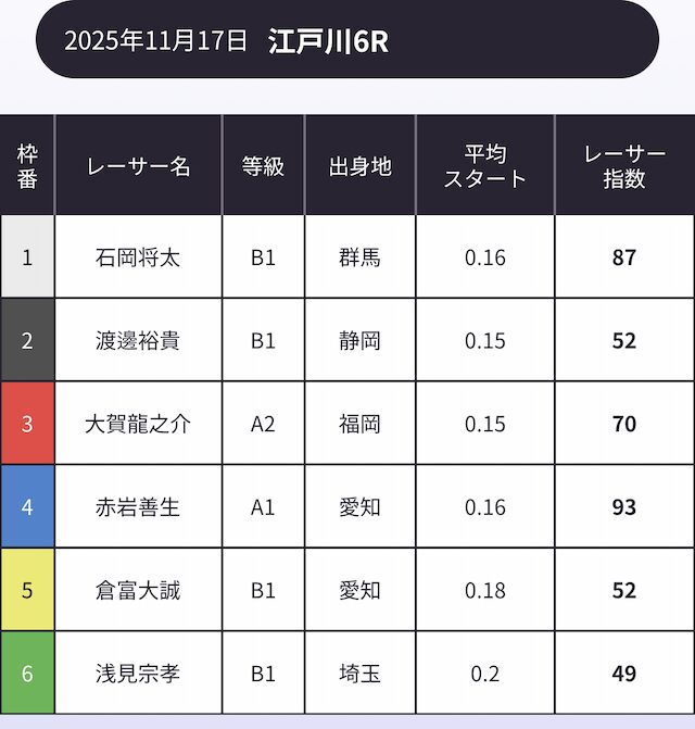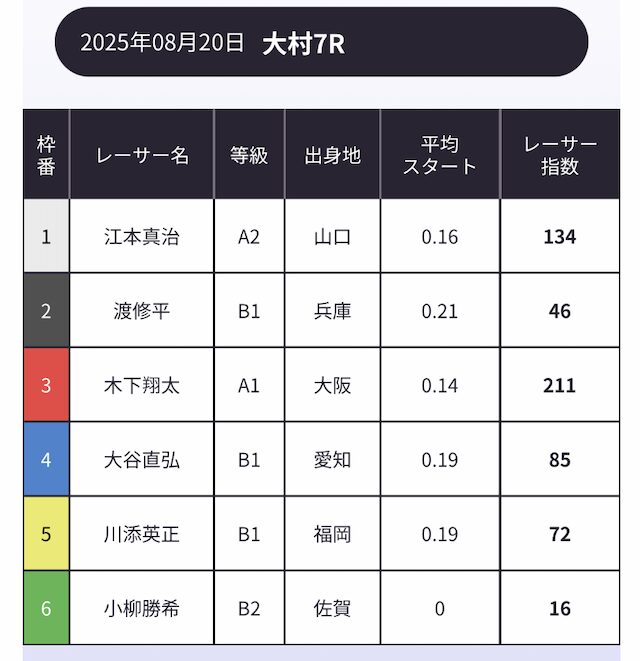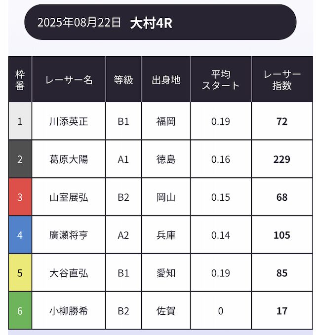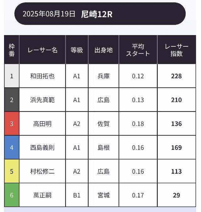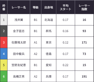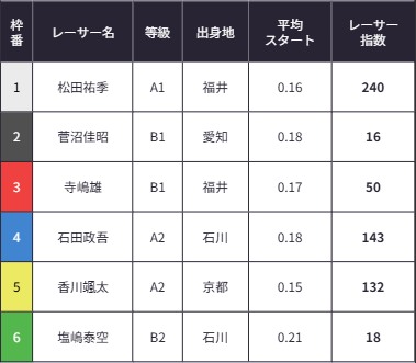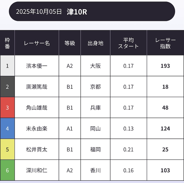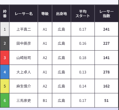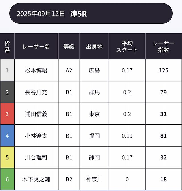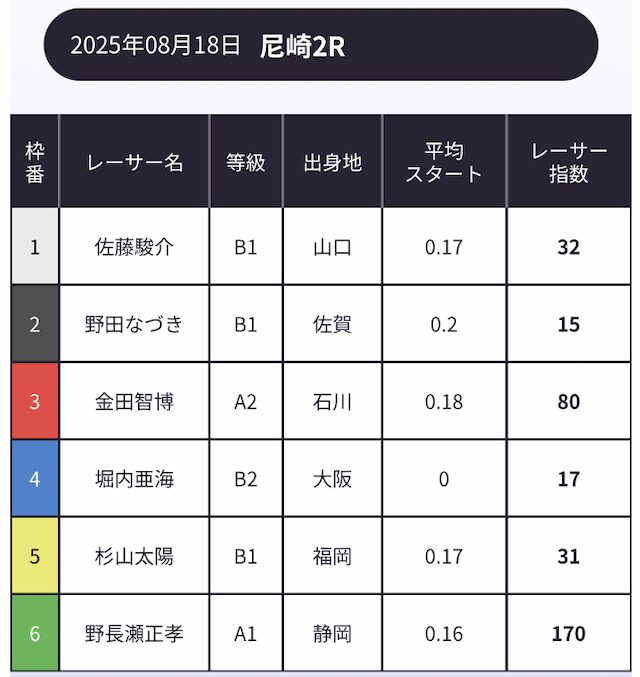 ボートラボの特徴は、具体的な買い目は出さずレーサー指数で期待できる選手を表している点です。