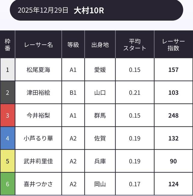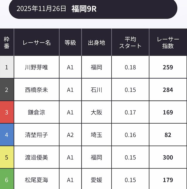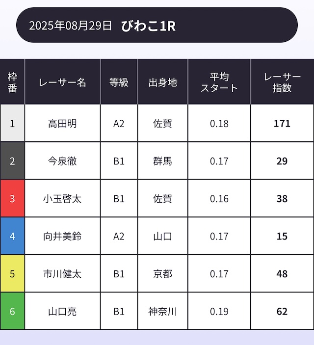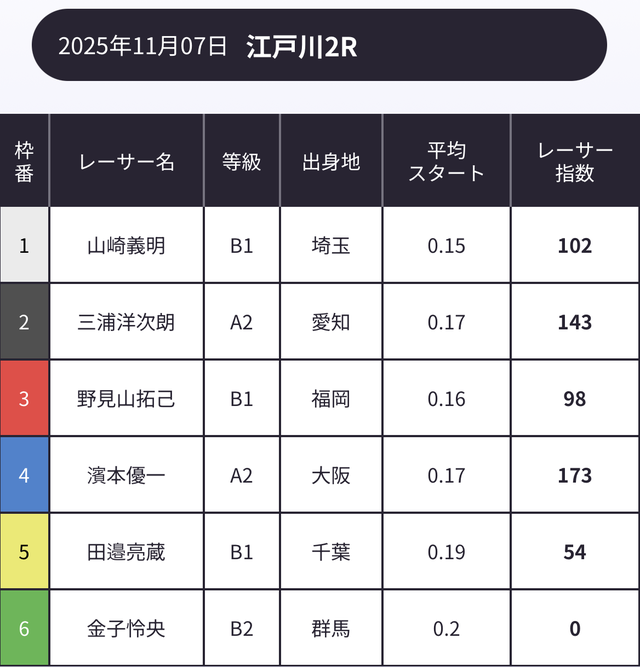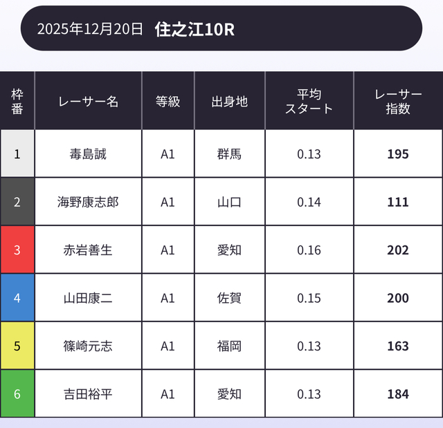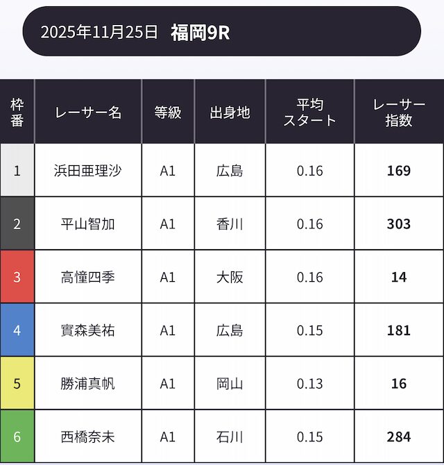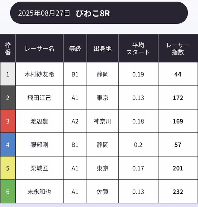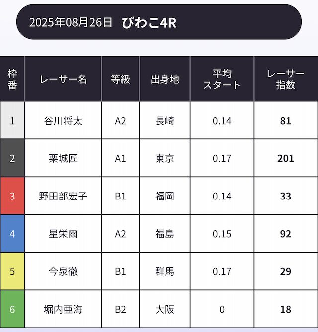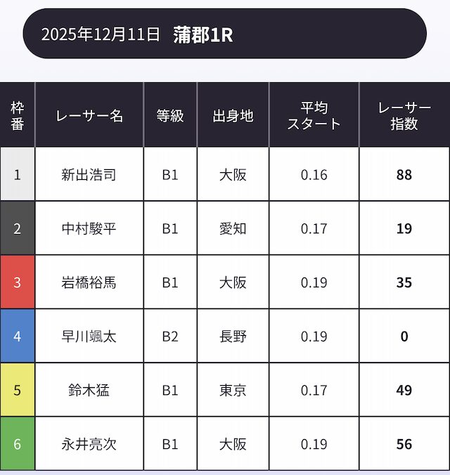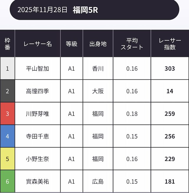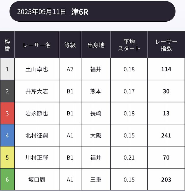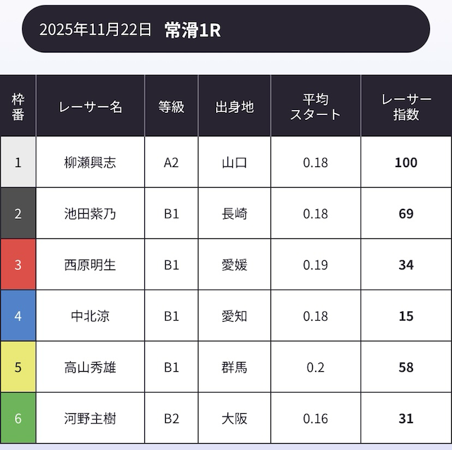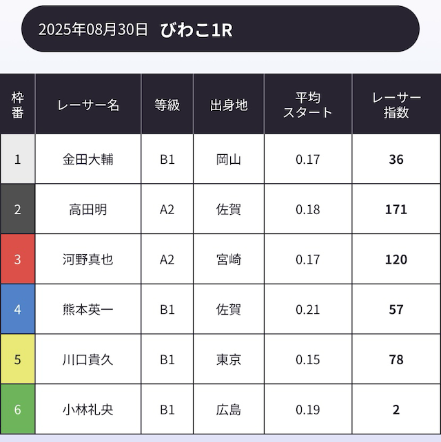 ボートラボの特徴は、具体的な買い目は出さずレーサー指数で期待できる選手を表している点です。