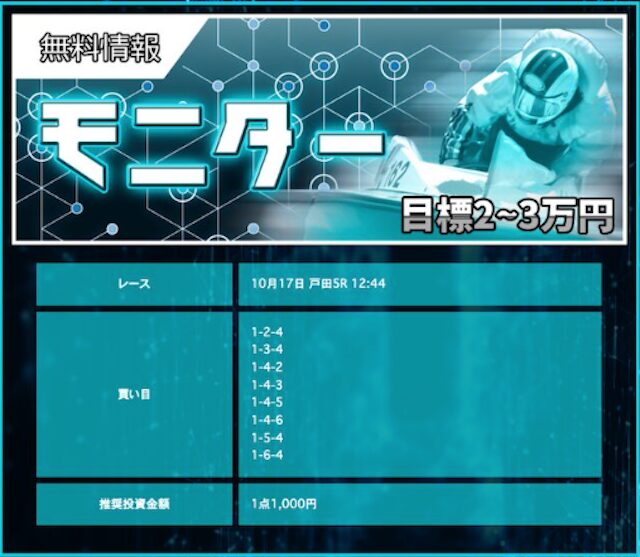 指示通りに舟券を購入すれば、月100万円の収益を目指せると公表しています。
