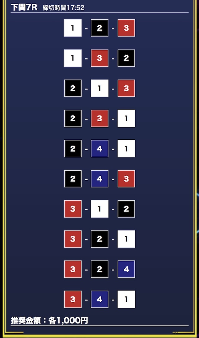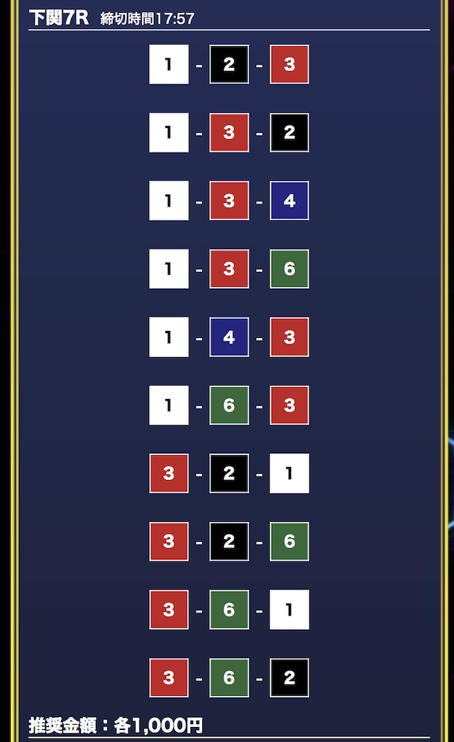 7月3日 | 下関6R | 三連単 | 10点 | 21,400円 |