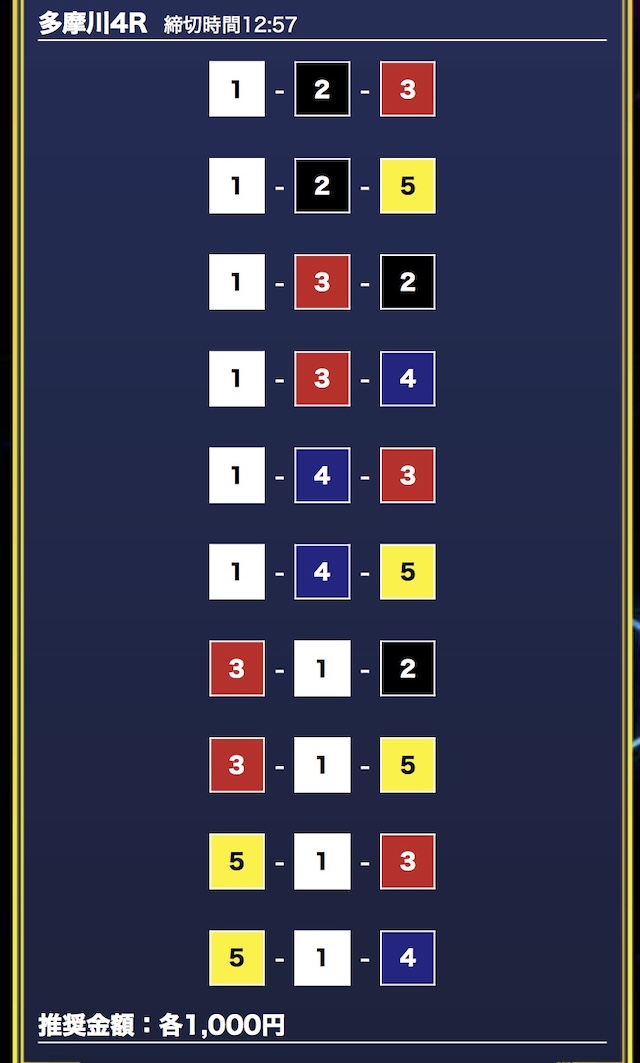 8月22日 | 多摩川4R | 三連単 | 10点 | 44,900円 |