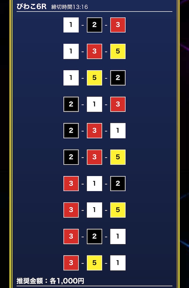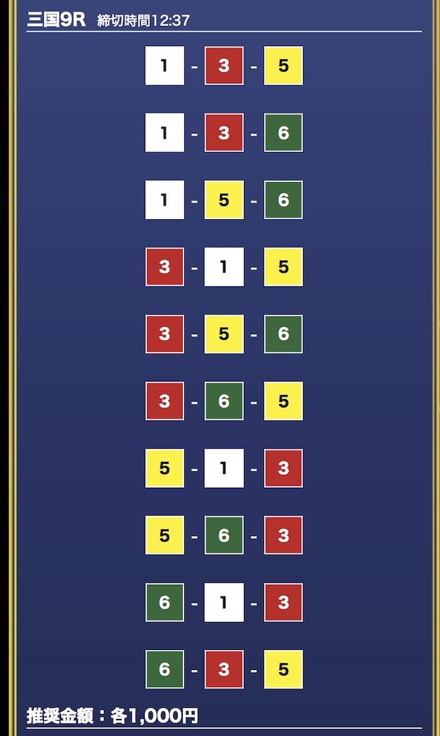 6月6日 | 三国9R | 三連単 | 10点 | 82,100円 |