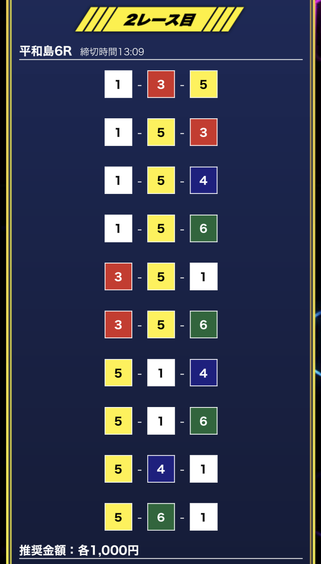 | 1月8日 | 平和島6R | 三連単 | 10点 | 15,500円 |