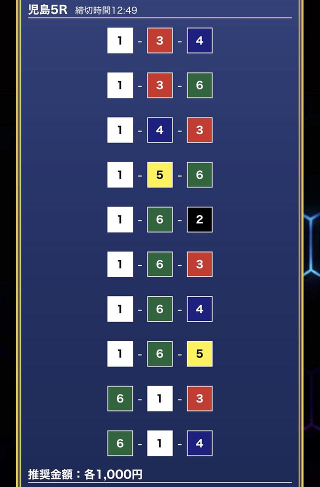 | 12月23日 | 丸亀6R | 三連単 | 10点 | 18,800円 |