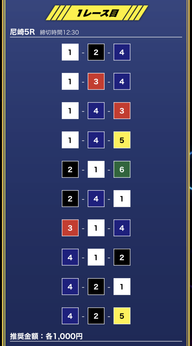 | 10月11日 | 三国5R | 三連単 | 10点 | 0円 |