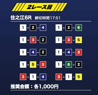 | 2月5日 | 住之江6R | 三連単 | 10点 | 13,000円 |