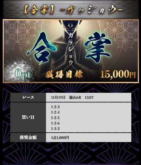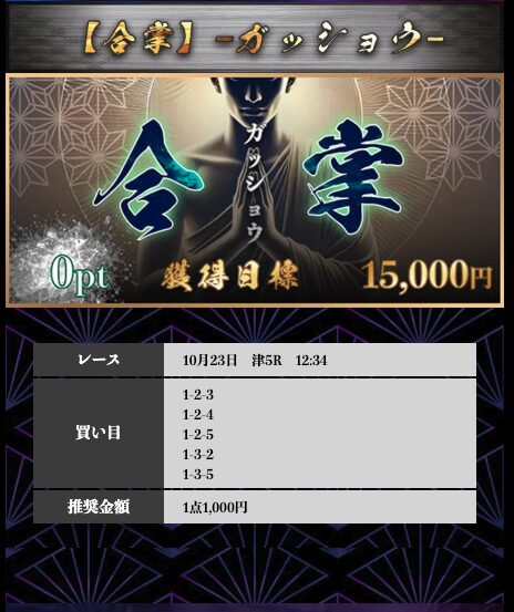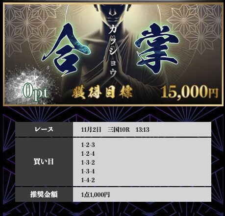 未だに負け無しを継続しているので、予想が公開された際は参加してみてください。