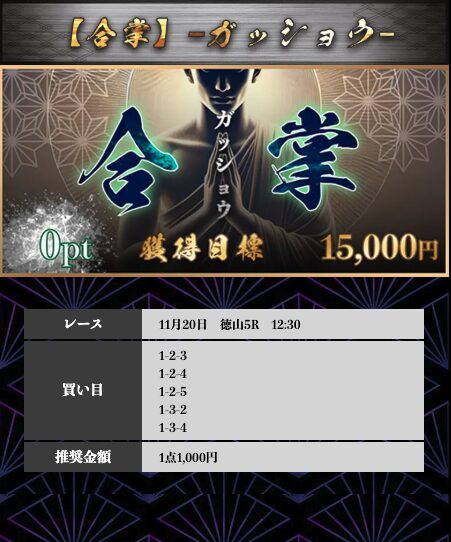 特筆すべき点は、少点数での的中率の高さで、わずか5点で3連単を的中させる実績を残しているのです。