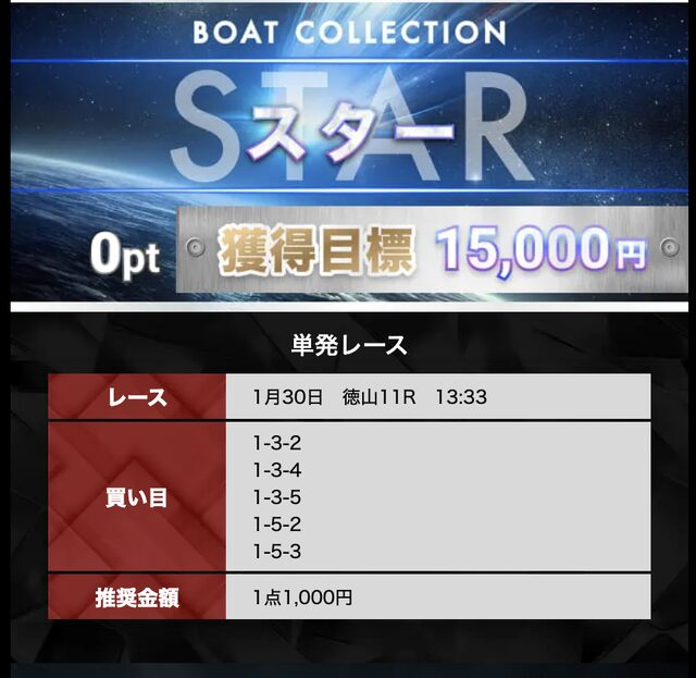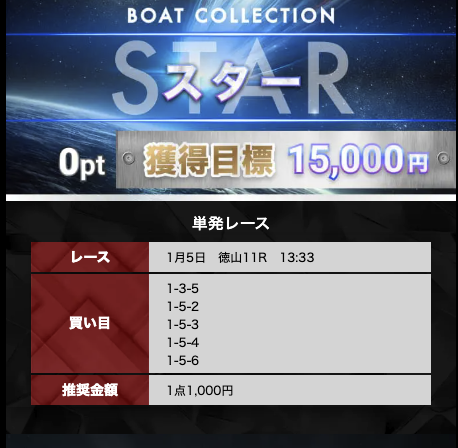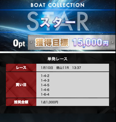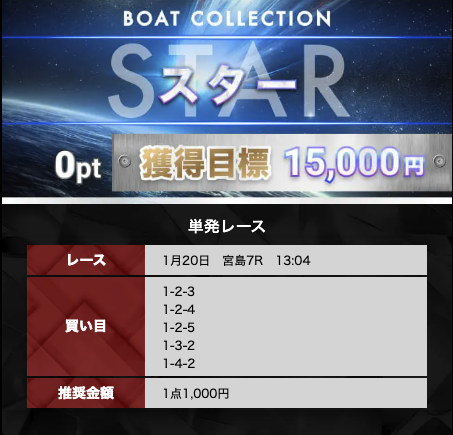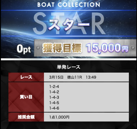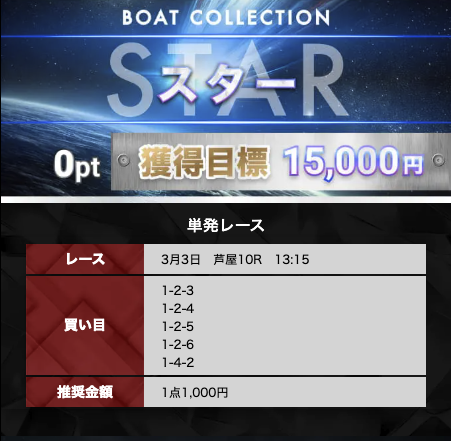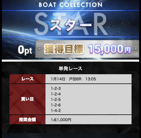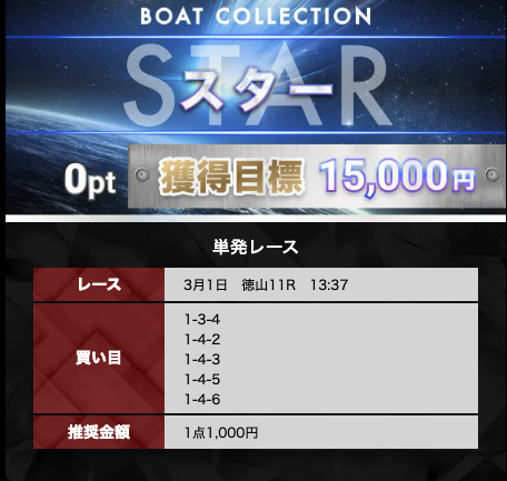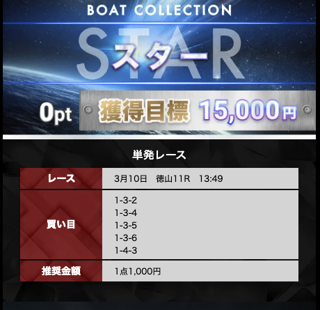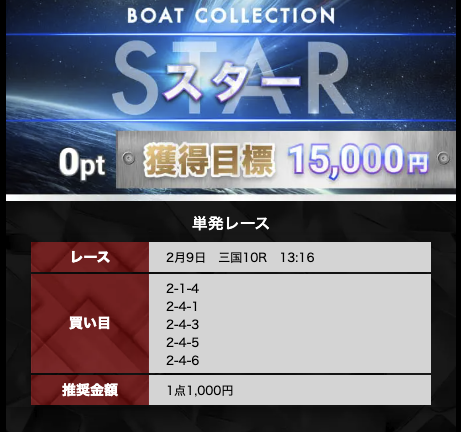 ボートコレクションの有料予想は、無料予想で3回当てれば参加できます。
