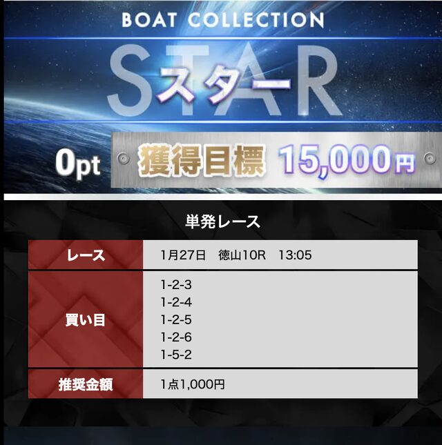 分析とは別で、ボートコレクションが最も稼いだ無料予想をご紹介しておきます。