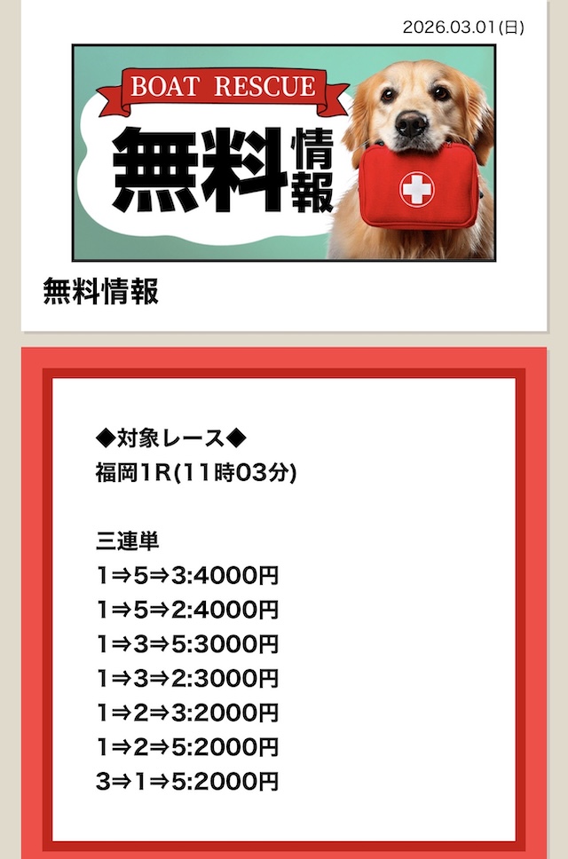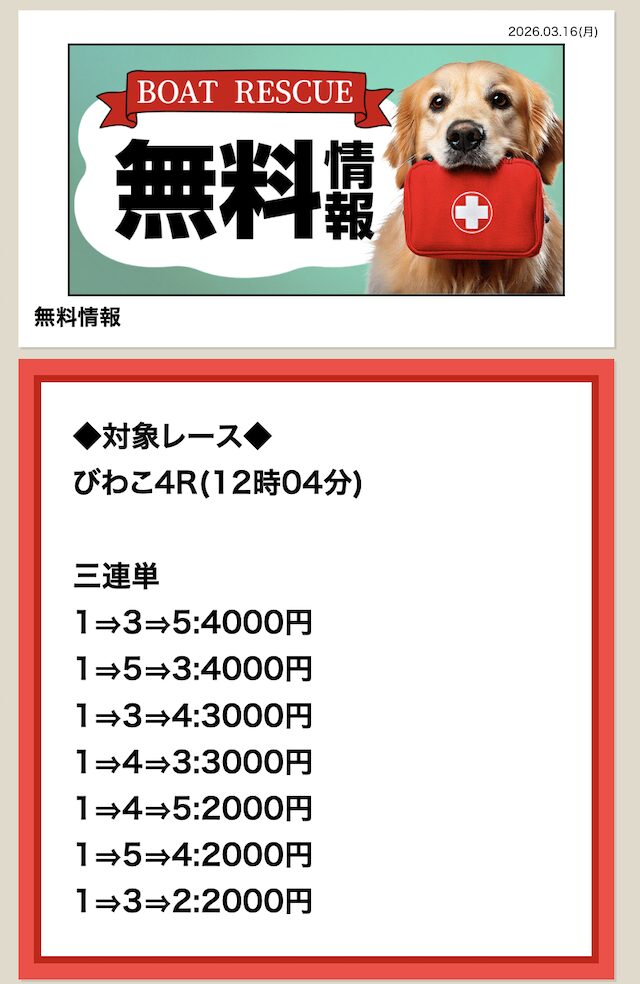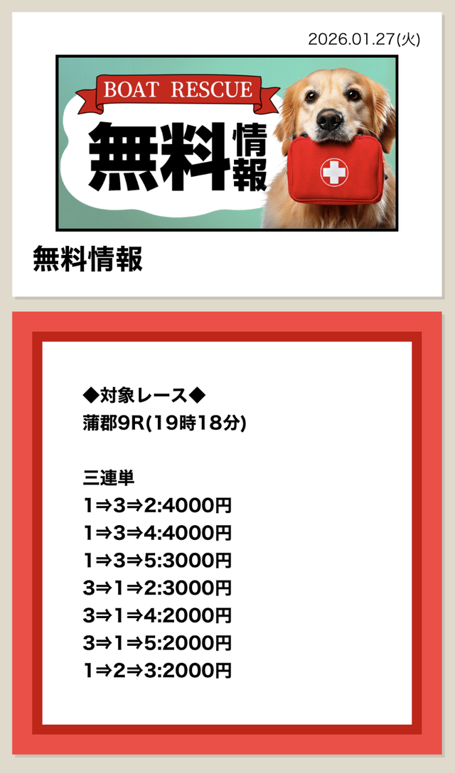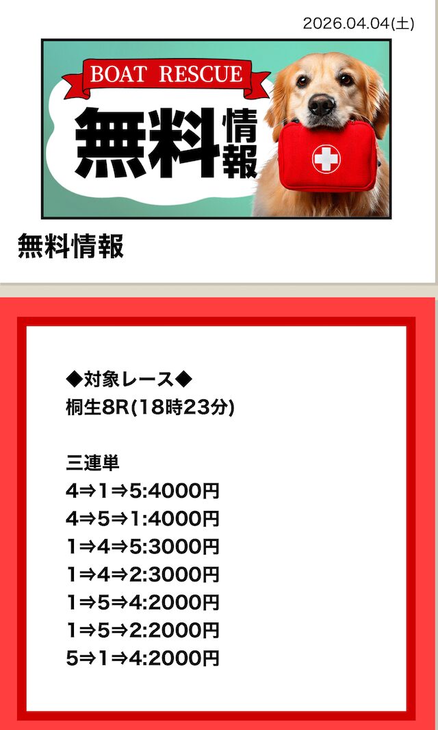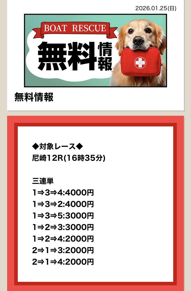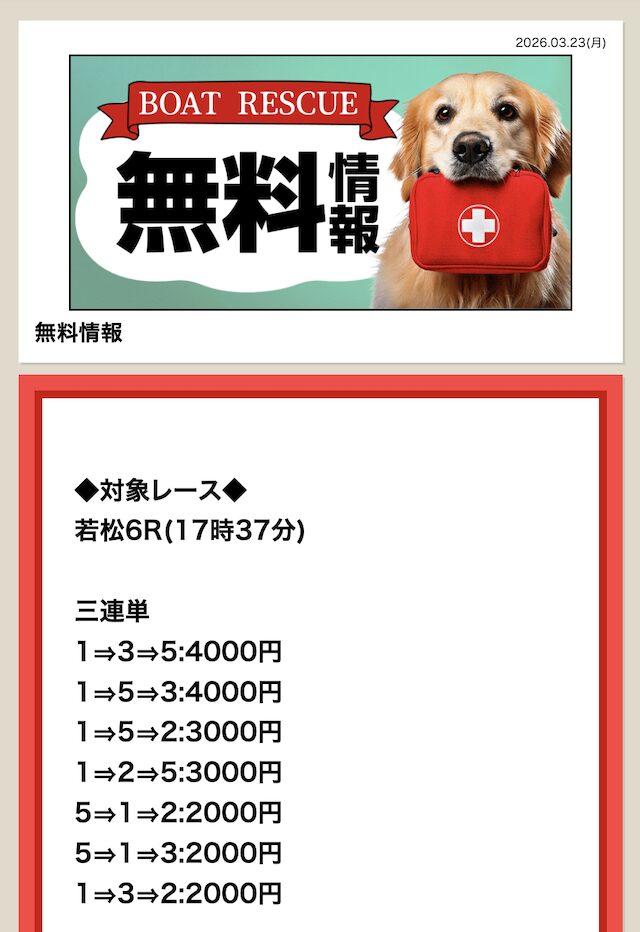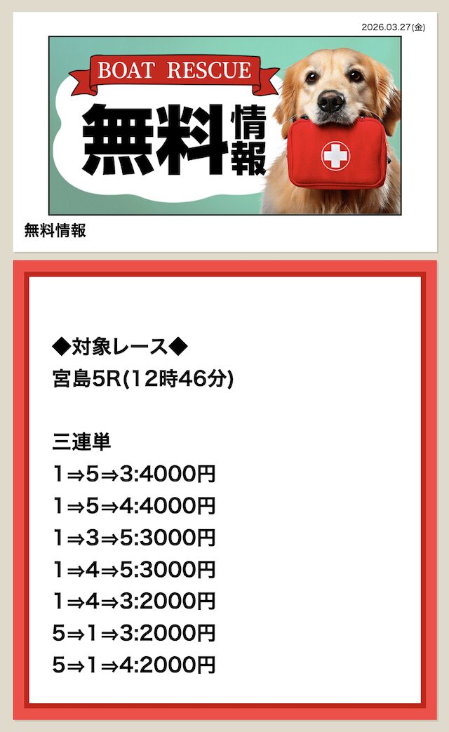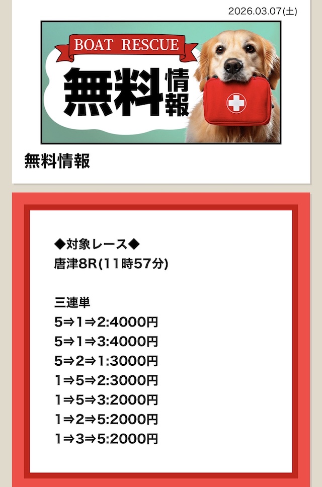 ボートレスキューの有料予想「ポイント情報」の最新の結果を共有します。