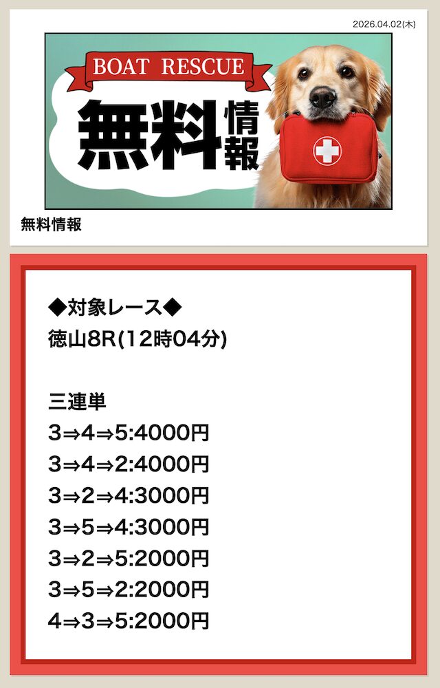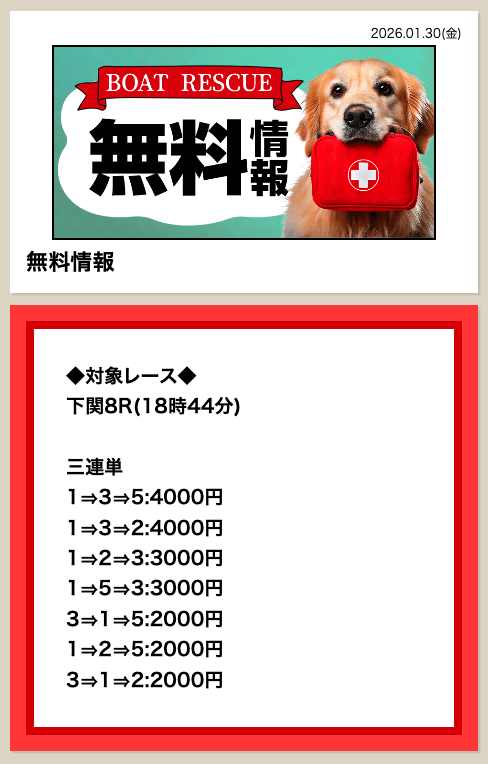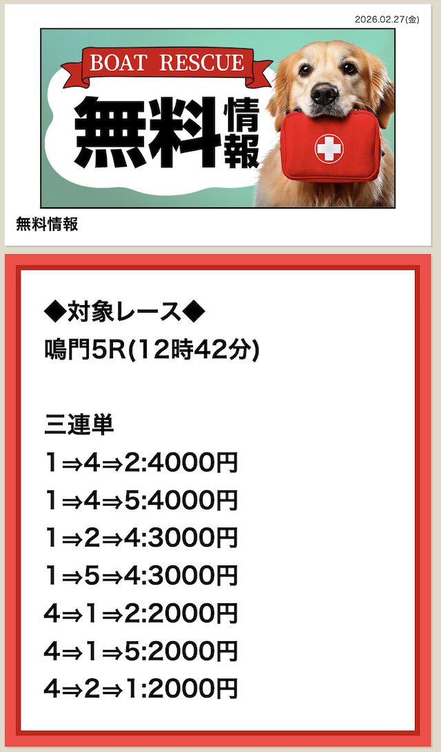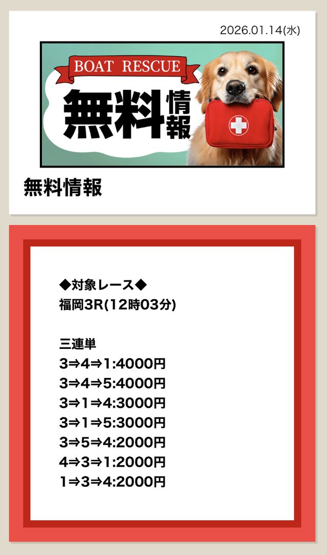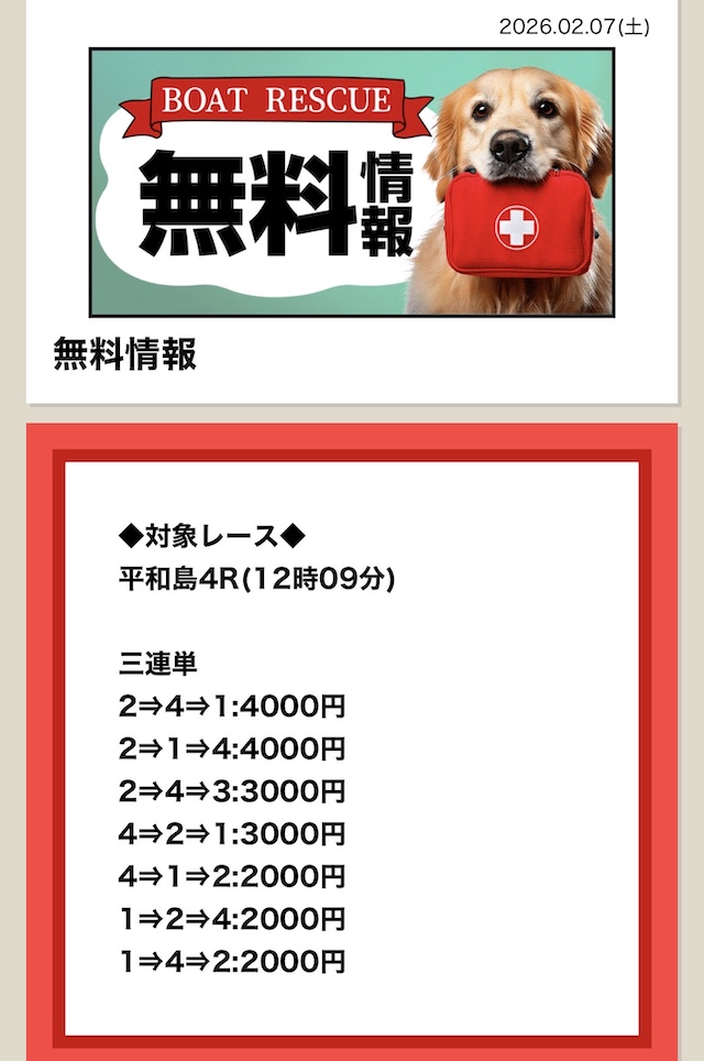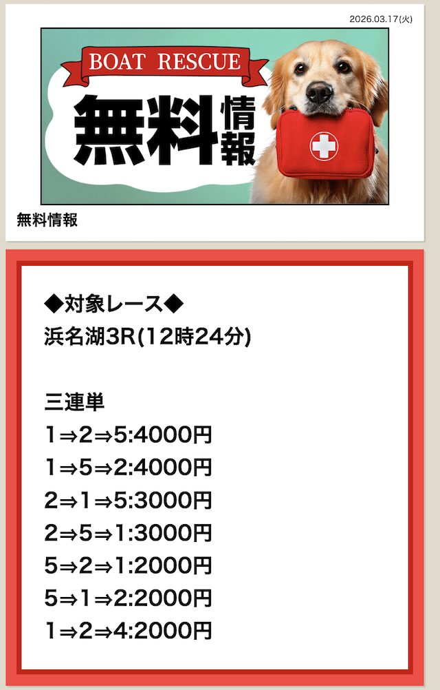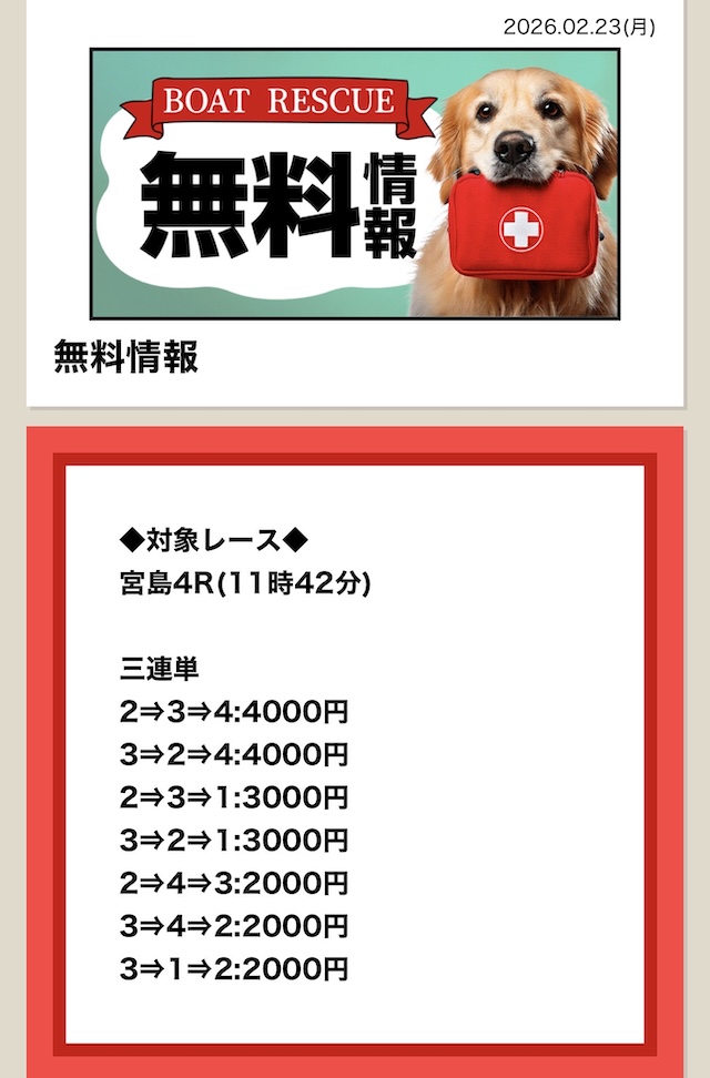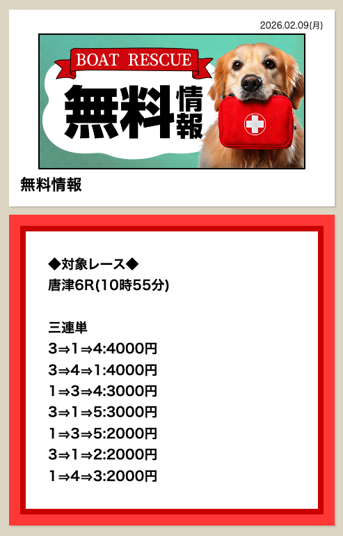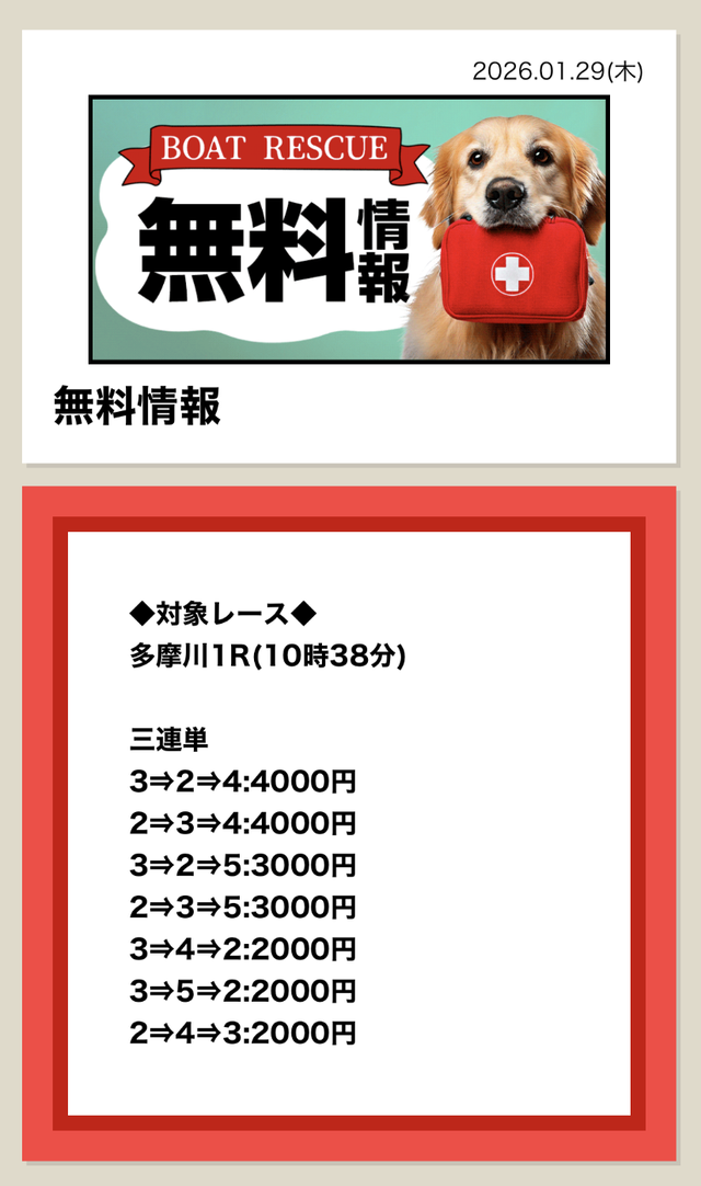 ボートレスキューの有料予想「ポイント情報」の最新の結果を共有します。