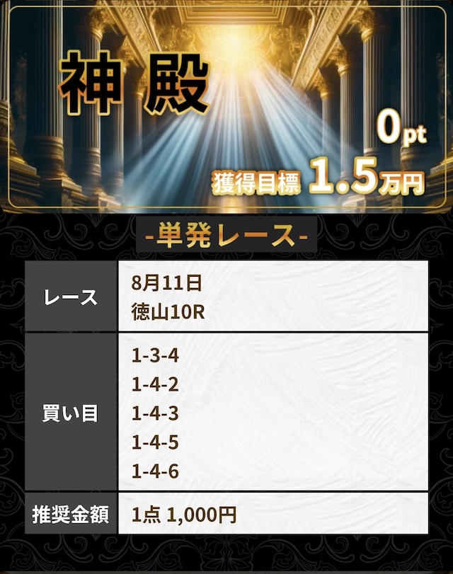 負ける確率を最小限に抑えたいという方は、徳山競艇場が対象の日は避け、翌日以降の予想に参加しましょう。