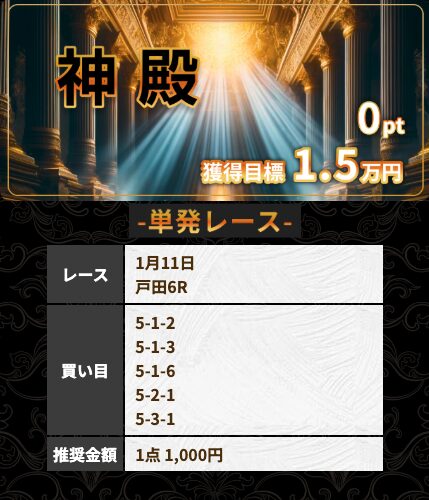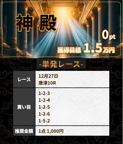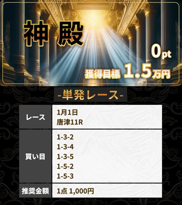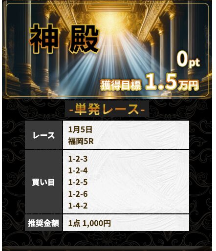 | 雪 | 1戦 | 100% | 374% | 13,700円 |