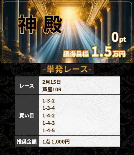 | 雪 | 2戦 | 100% | 266% | 16,600円 |