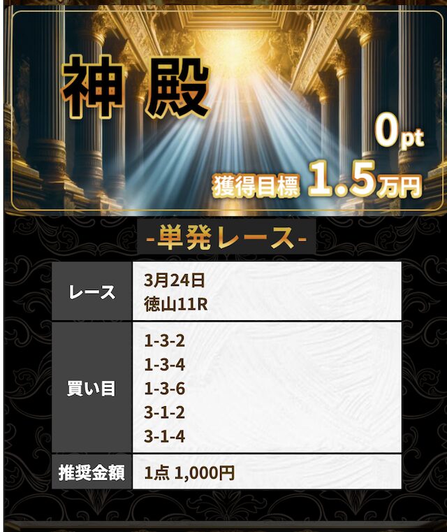 強いて言えば、あくまで無料公開されている予想のため一攫千金を狙えるわけではなく、1回の参加で10万円以上稼ぎたい場合は投資金額を増やすか、有料予想を試すという選択肢になります。
