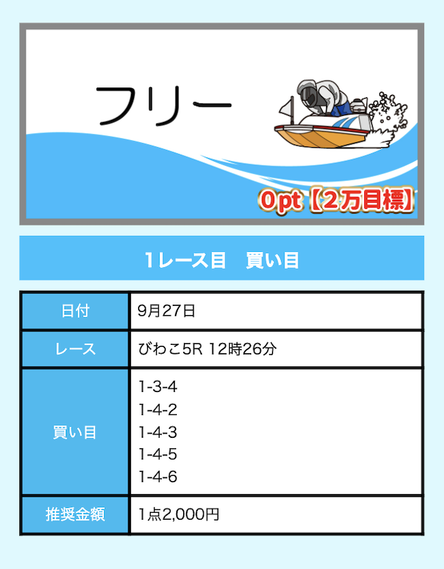 分析とは別で、競艇ルーキーズが最も稼いだ無料予想をご紹介しておきます。