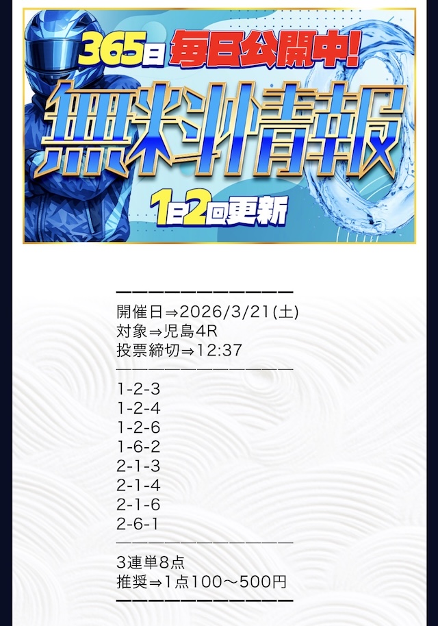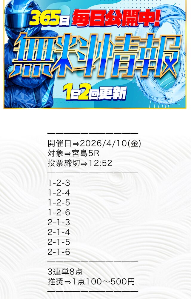 ボートシグナルが最も稼いだ無料予想を紹介