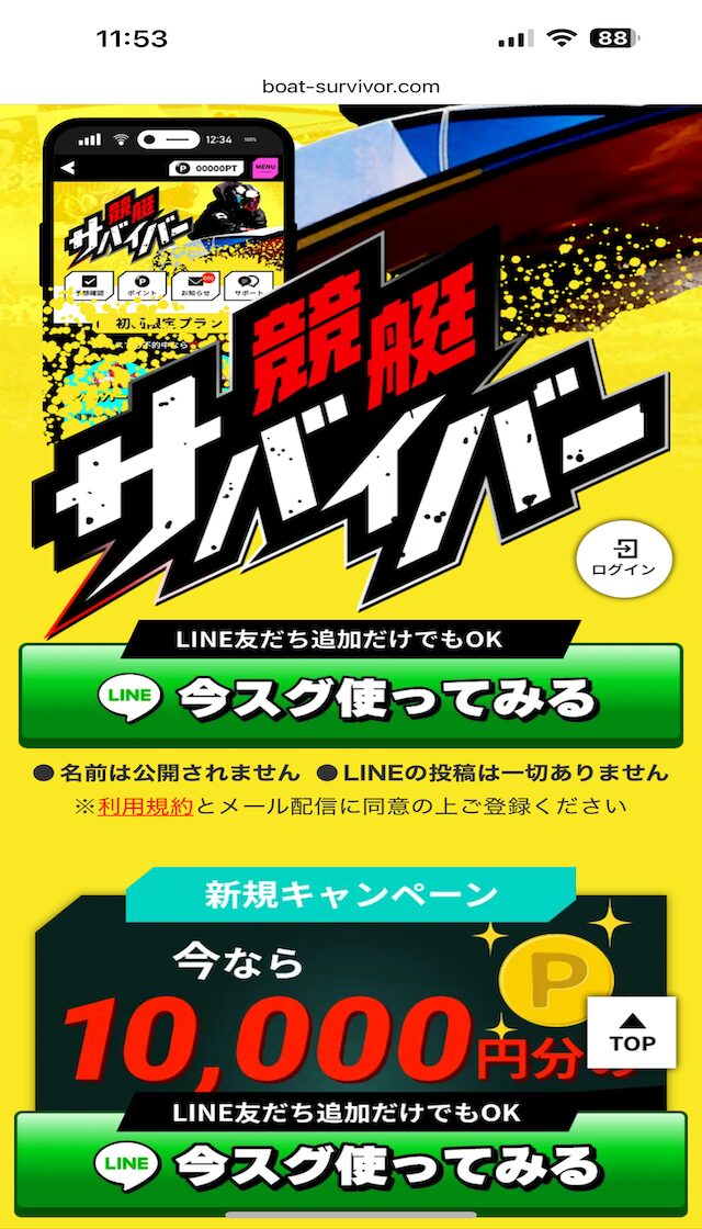 競艇サバイバーに登録すると、1万円分のポイントが貰えるそうです。