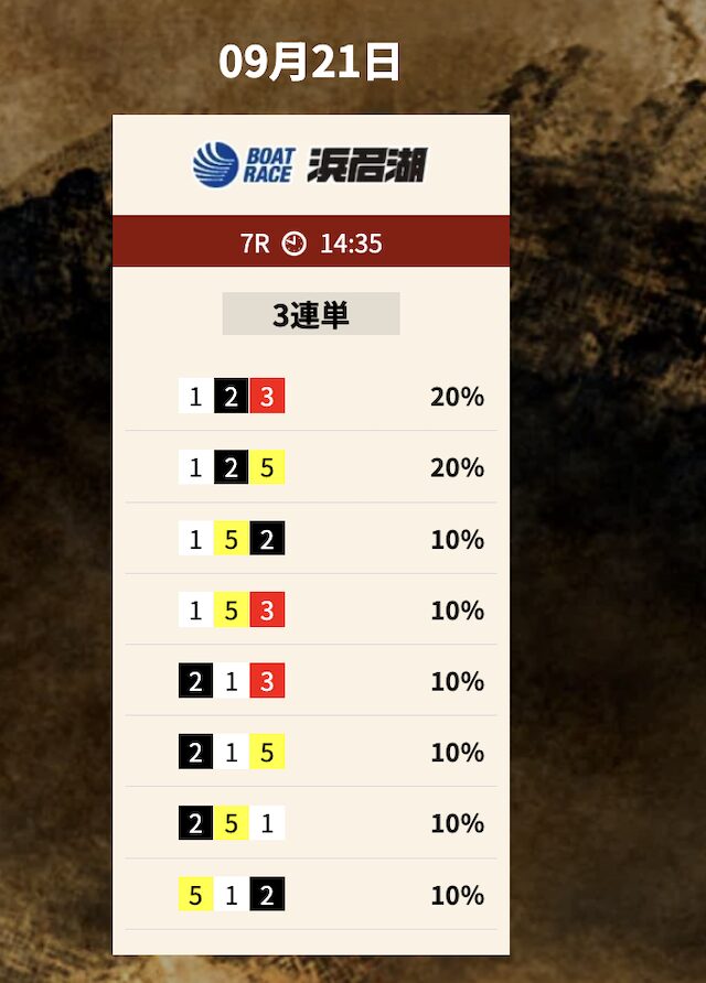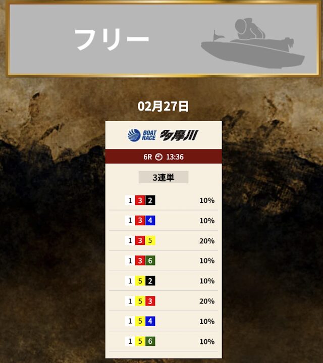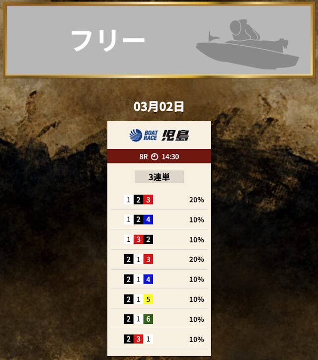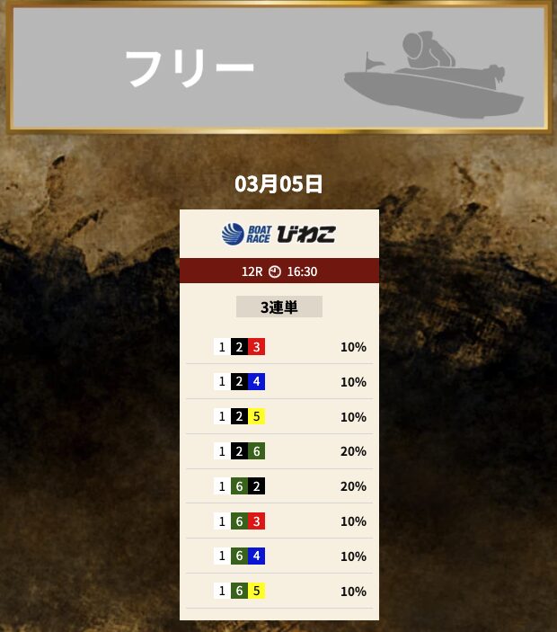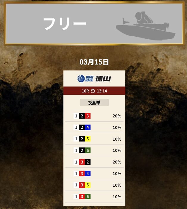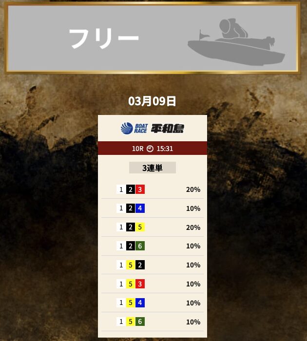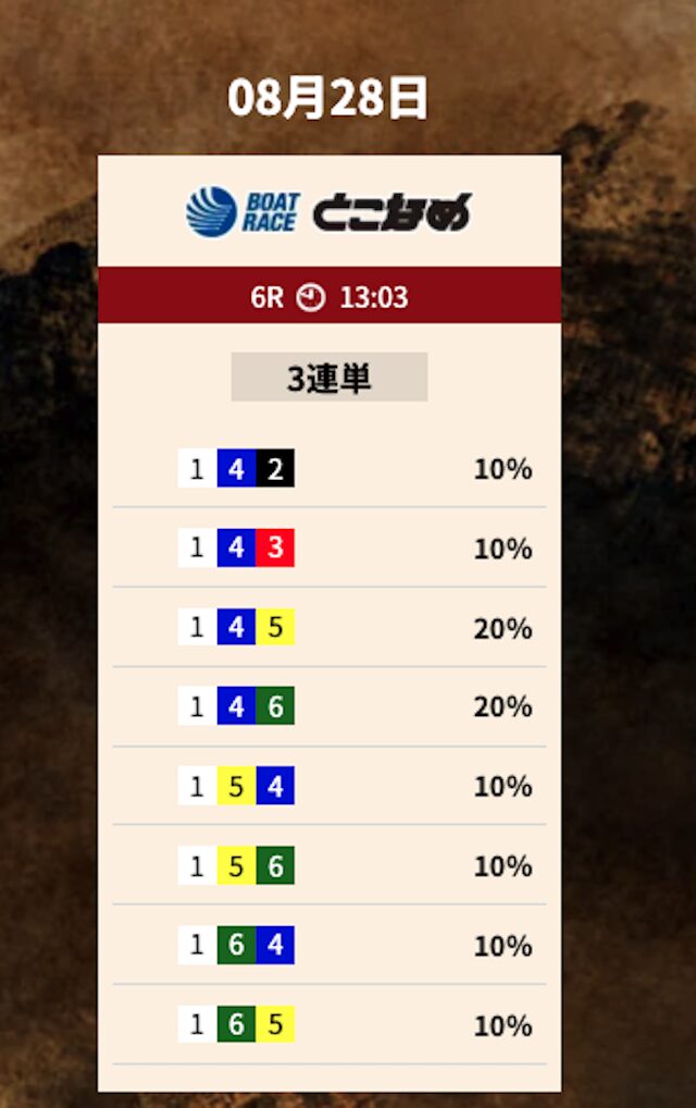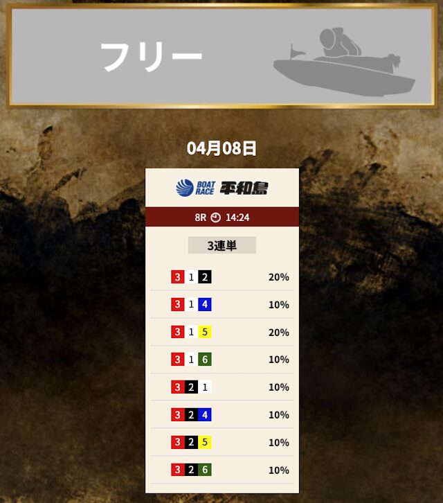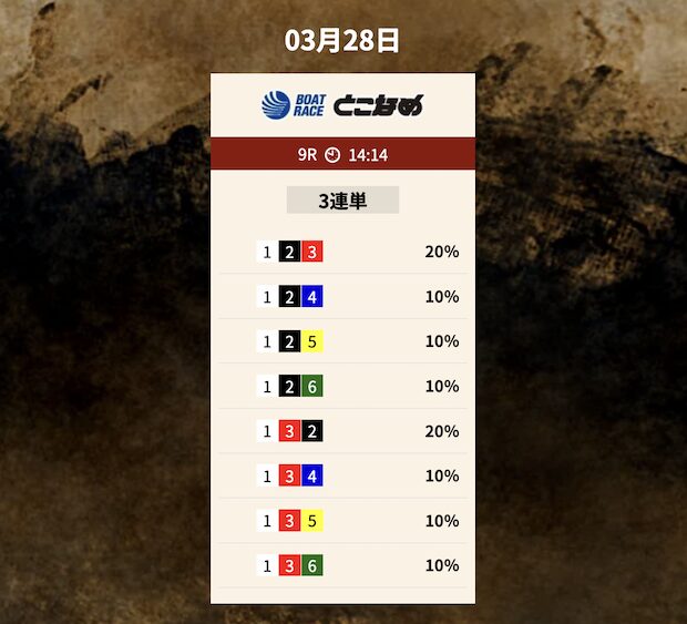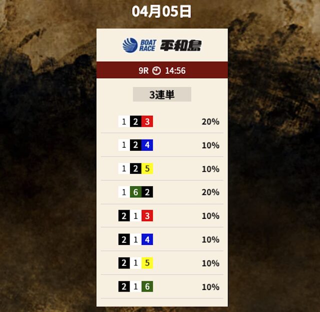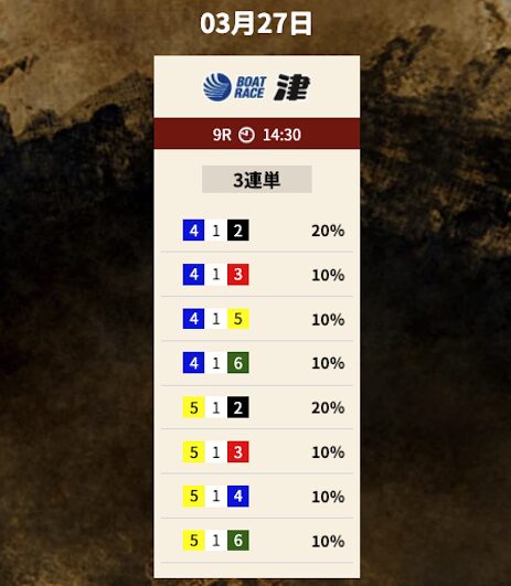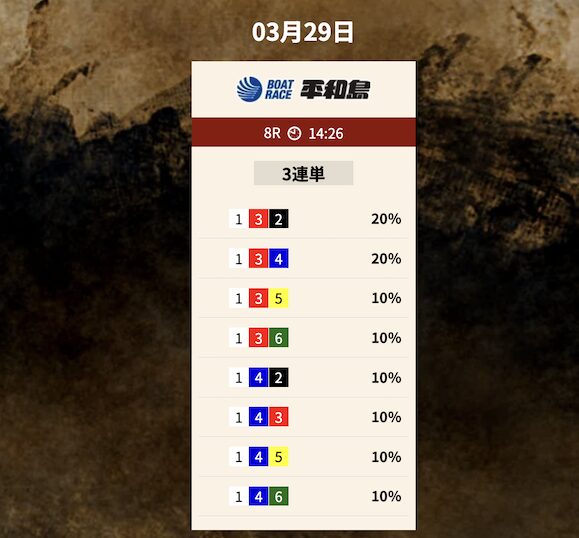 では、競艇トレジャーハンターの予想を見てみましょう。